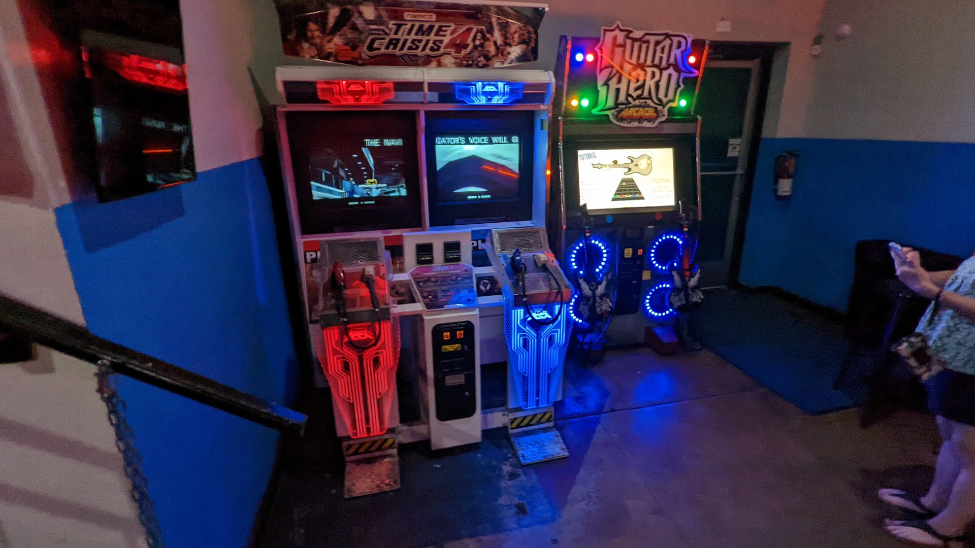 Was expecting a lot more games honestly. Heard about this place from my geeky friends so went to see what was up. Pump it up machine, a race game, and a bunch of fighter games that are older and worn out. Some emulators were not when the outside case advertised either. A soccer version of pool upstairs was clever. Down stairs was 1 pool table, every cue was broken in some way, and it was a quarter to dispense balls but not all the balls came out, ended up playing 9 ball, kind of... the oversized jenga table was also very close to pool so had to pay around each other. Beer pong table also crowding around the others. As for the bar they had one upstairs that was not open and one downstairs that was crowded because it was a spurs game. Alcohol content of mixed drinks was very sad too. Don't plan on going back because it's not near where I live. If you like old arcade fighters you may enjoy it, but they really need to at least get pool cues that...