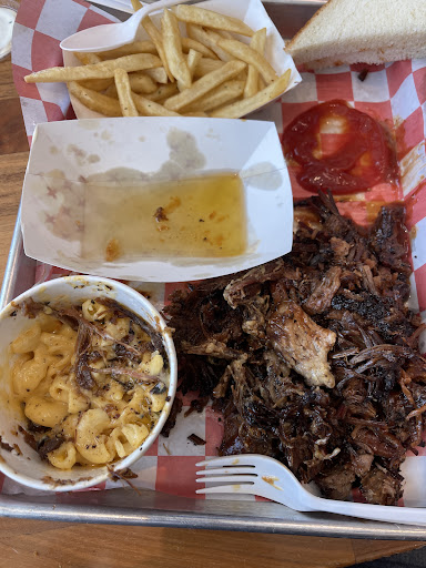 Read moreREAD BEFORE COMING HERE I grew up in Austin TX, 2 hours north of here. I pride myself a BBQ aficionado. I smoke my own brisket and all. We decided to stop at the smoke shack in the San Antonio airport, and I regret saying I was pretty disappointed. I know you can't expect much from airport BBQ, but still. The brisket comes pre chopped, and very dry. Mac and Cheese had a pool of grease I poured out. You can see it in the dish in the photo. The "seasoned" fries had perhaps been stored next to some parsley and accidentally got exposed, but I wouldn't call them seasoned. The ribs were passable, but also dry and a touch tuff. Chopped Brisket sandwich was also dry, with no pickles onions or anything else. All in all, as a Texan I would hate for someone passing through to think this is typical Texas BBQ. Service was...