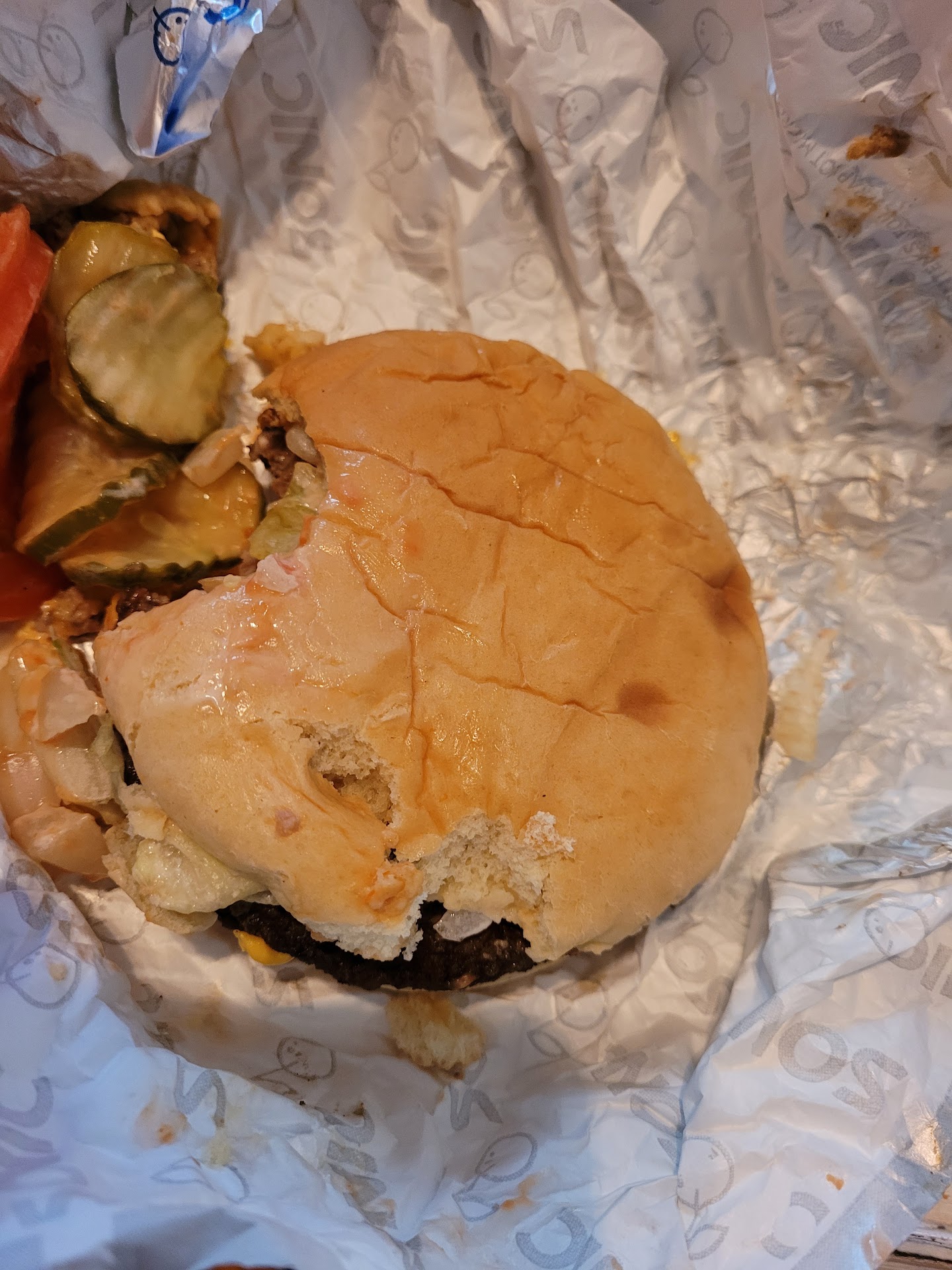 Read moreIt's was around 4:30am this morning, when I threw up my Sonic Burger. Only thing I ordered. No tots and drink. Last meal was at 9am. Felt great and hungry at 7pm. Sucks... It's around 5:30am now and I feel better. I ate Sonic Burger then about 2 hrs later I ate some Gluten Free Cookies and milk, and a bowl of Chex rice cereal with banana. I got to keep the Cookies and Cereal in my stomach. It was mostly chunk bits of the meat, and the lettuce and bits of pickle.