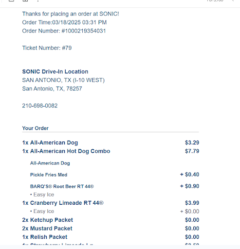 At this point, I asked for his name, which he refused to provide. Instead, he called his manager. The employeeâa Spanish-speaking man with a neck tattooâwas instructed by his manager to give me a corporate number. What I received, however, seemed more like a personal cell phone number, and no one answered. So, I called Sonicâs actual corporate office and explained the situation. Unlike the employee, they were understanding and immediately refunded my moneyâit hit my account within minutes.