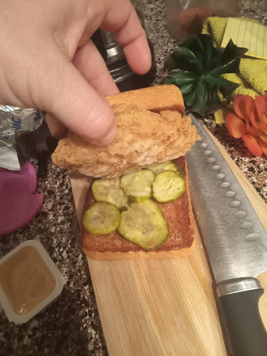 The burger which was clearly marked on the receipt NO pickles ADD tomato, lettuce, and onion. Was loaded with pickle and had NO tomato, lettuce, or onion at all! Which was horrible for the person recieving that meal because he's allergic to pickles and was unable to eat his burger!