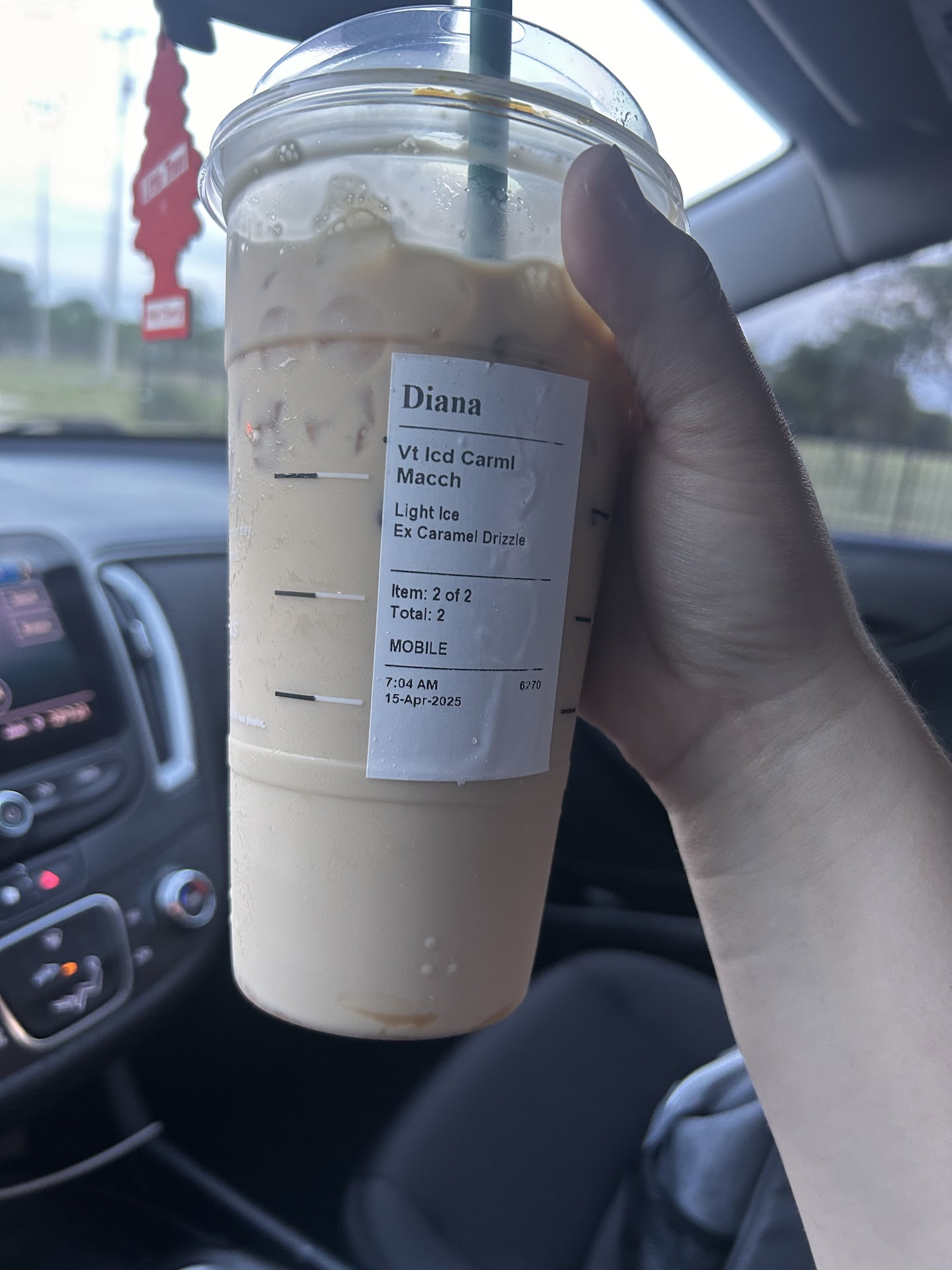 I placed a mobile order to pick up in store because I tend to have a busy morning and itâs more efficient to walk in and have my drinks ready versus waiting in store for them to be made. I placed my order of 2 drinks at 7am and only one drink was ready. I asked about my second drink 2 times and spoke to the assistant manager named Jon. At this time itâs 7:18am and still no second drink. I was upset because walk ins were receiving their drinks before me. I asked again and he finally made it. It took hime about 20 seconds to make my drink. He made it in such a rush it tasted horrible. If I wanted bad coffee I would have gone to the corner store for coffee. I ordered a caramel macchiato with light ice and extra caramel drizzle, he put two scoops of ice and very little caramel and it seems like he didnât put any vanilla syrup thatâs is supposed to come with because it was bitter. After 20 minutes I could not wait for them to remake it. I have been having so many issues at this location and keep thinking to give it chance after chance but no improvement. I wonât be visiting this...