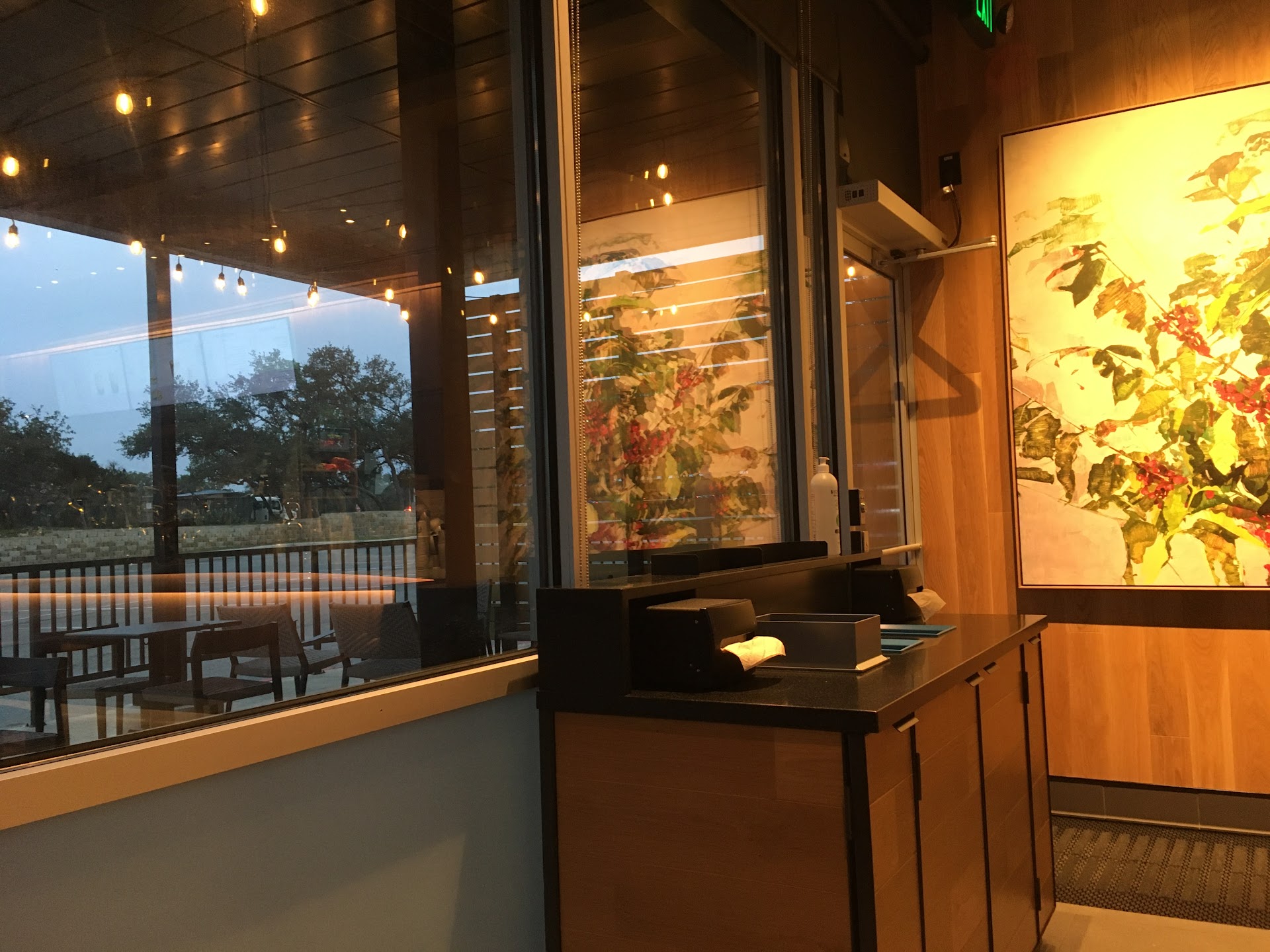 I come here very often and todayâs visit just really was poor. I walked in and no welcome. Yes the drive through was fairly busy. It was misty outside. However I work in customer service at the mall across the parking lot. I get to the counter after the next customer and the girl who was working on. April 6 at 1130 with purple braids was unprofessional. You donât finish with a customer and then the phone rings regarding what sounded like a web order take their order with out having the decency to let the customer(ME) who WAS next before that phone call that you would be right with them. I understand this is a new establishment and seemed they were short staffed for todayâs traffic but this girl very much appeared to have not liked her job today. Another little girl ended up seeing 5 people in line including me and took everyoneâs order. I did address tell her âThank you for thatâ (assisting me) and explained the issue and she herself said I totally understand. I am sorry about that. I guess I will remain getting my drinks in my home area (Alamo Heights) instead of here where sometimes itâs...