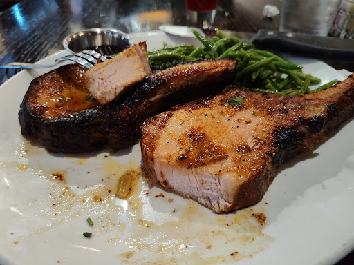 This being said, the chops were perfectly cooked and had a very good flavor. The two veggies, mashed potatoes and green beans were plated with the green beans placed on top of the potatoes, rendering both messed up and had no distinguishing flavors. Please pass on the aesthetic and plate food without putting everything on top of each other.