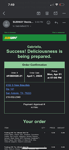 Read moreLiterally the WORST subway experience I have ever had, I ordered 3 sandwiches, a pizza, two sodas and two chips... the ONLY THING CORRECT were the soda and chips. I made the order online for pickup, it was supposed to be ready at 7pm, I showed up at 6:58pm and they hadn't even started making the food, I was completely fine with that and patiently waited. It wasn't until I got home and literally everything in my order, except for the bags of chips and bottled sodas that I grabbed myself, was messed up that I had a problem. It took me an hour to get anyone to answer the phone and the woman who did answer the phone had an immediate attitude. I don't even feel comfortable showing up and asking for my order to be fixed. I guess maybe just avoid this subway, it's pretty awful, I don't know, maybe...