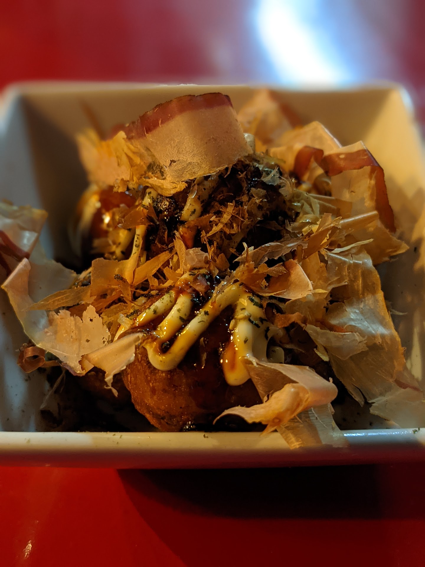 Started off with the Takoyaki as an appetizer, followed by the Angry Hakka ramen, ribeye rice bowl (gyudon), and bubble tea. The Takoyaki came in an order of 6 and was was pretty filling. The Angry Hakka was a spicy version of the Hakkasan ramen. I was hesitant and ramen isn't traditionally spicy, but it was good. Spice is subjective, but it was spicy without being overbearing. The ribeye rice bowl was basically the Japanese gyudon dish served with 2 fried gyoza. Also, ordered 2 of the bubble teas. I inquired about the sushi they had listed, but they said they stopped serving sushi.