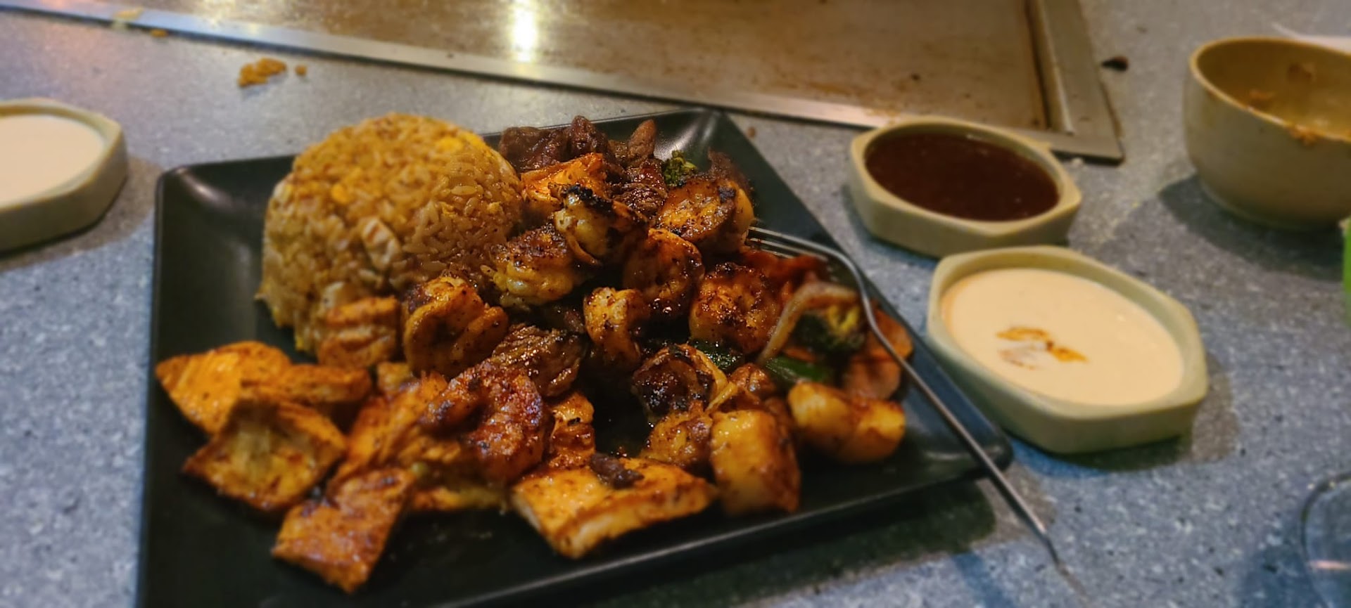 I've been to Sumo a number of times but I've only come here once on my own volition. My best friend loves to come here so I'm often forced to go, however, it's not my favorite place to dine, not by a long shot. This restaurant used to be a Benihana (which my best friend has never gone to) and it is evident that Sumo is a watered down remnant of what this restaurant used to be. Everytime we go, within minutes of arriving, I attempt to explain to my BFF the magic of what walking into a Benihana was like and every time, she simply rolls her eyes and pretends to listen as I talk about porcelain geisha shaped drink vessels, the sushi bar, and bamboo and rice paper dividing walls. The interior of Sumo was haphazardly smacked together after the franchise license for Bennihana was lost and this is evident by the missing paint, tired and peeling counter tops, dented teplanyaki grills, old leather inspired seats that are peeling and dust filled rafters. When you walk in, it's dimly lit and the black color scheme inside make you feel like you're dining in a cave. Nothing in the restaurant is pleasant to look at. The Japanese theme is only in the name as it does a poor job of remaking the Japanese ambiance that most teplanyakis have. This restaurant takes no pride in its presentation and it's evident that the proprietors of the place simply don't care. Every time I come in, it seems like half the restaurant is shut down and it's never incredibly lively and buzzing like it used to be when it was a Benihana. It's been 3 years after COVID, and I'm still being handed a poorly xeroxed menu which is unacceptable when I'm spending upwards of $60 a plate. The only bright spot of the restaurant are the teplanyaki cooks who are quite good and entertaining. However, despite their prowess on the grill, I always find that the food quality is fair but not great. The quality of the ingredients is definitely lacking and that shines through with every lackluster bite. When forced to go, I genuinely used to enjoy the fried rice but something has changed and it's not near as good as it used to be. I also used to enjoy the yum yum sauce and the ginger dipping sauce, but much like the restaurant, these sauces have been watered down too and and is nothing like what it was before. There are better teppanyaki grills in town that offer better food at better prices in a much more pleasing ambiance. I kept seeing commercials that they were opening up a hibachi bar, however I wish these funds would have been reallocated to renovating the restaurant and making it seem like a place you want to be if you're going to spend $200 plus dollars on your date night. Somehow this restaurant was voted the best steakhouse in town and I'm not sure why when you've got the likes of Bohannon's, Myron's, and others that I would much rather spend the cash on. I love what Sumo is trying to do, but the execution is an abysmal nightmare. Sumo reminds me of trying to paint a watercolor painting with the water you use to clean the brushes with; yeah, they were all once vibrant colors but now it's a gray jumbled and contorted mess with only hints of the colors that...