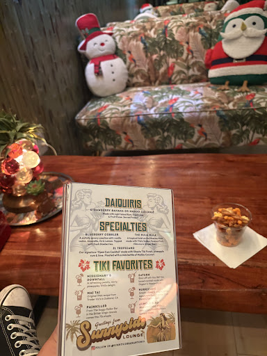 Read moreAs both a Tiki nerd and a Disney nerd, (and a fan of Jeff Granito's art) the vibe and decorations of this place were a fun surprise! We walked into I guess 3 separate parties happening throughout the bar, so it was lively, but we still got a bar seat with a clear view of the TV to watch "Forgetting Sara Marshall" while sipping on our drinks! They gave us free snacks: a yummy mix of pretzels, cheetos and crunchy things. I loved looking at their Disney pins to see what collector items they might have hidden. I'm gonna bring my mom next time she visits - she's a past Disneyland...