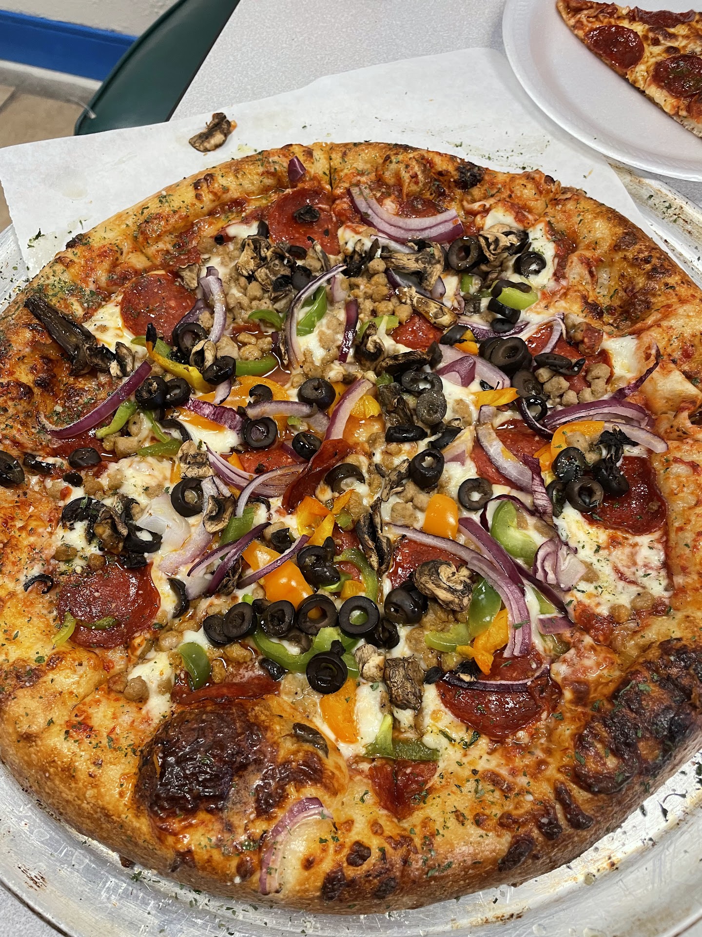 Read moreWe are local to the area & decided to give this place a chance. We were apprehensive at first, but love to give new places a try so we dove in head first & went in for a sit-down dinner. The cook/front of house was welcoming & nice! He explained the menu and showed us what is already printed plus the extended menu. We decided to order the 14in pepperoni & cheese, an order of wings, a 14in supreme and 5 drinks. The wait time was almost nothing! We had our food in great time & it was mega hot and fresh. Sauce: The sauce is on the sweeter side. Definitely not a classic marinara, but still tasty!! Toppings: They're fresh! Veggies were cut in restaurant and definitely not frozen. The meat crumble probably is, but I mean - when sprinkled w/fresh toppings its really no big deal. Everything tasted GREAT! Crust: Ya'll - this crust was brushed with some garlic butter & parsley. GREAT little surprise to see on a crust especially since it isn't widely done. It was bomb!