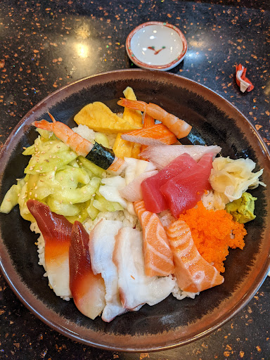 Ā Ā Ā Read moreThe staff was nice and really welcoming. Staff gets a 4. Food was ok (3). When ordering, you are sat at a table and then you look over the menu. Then you get in line to order. If you just want water it will be in water bottle form. I always venture for a new sushi restaurant and I've reviewed inexpensive to majorly expensive so as this one was near our area I figured we would try it. Whenever I have sushi, I always get a chirashi if it's offered. It's a large bowl of fish and things depending on where you go with rice under it. This one was good. Quick call outs, the fish cuts where all over the place. Some really thin some generous. The cucumbers had an odd color to them but they were pickled and tasted better than they looked. The octopus in the chirashi was underwhelming. It was 2 pieces but one piece was tiny and the other piece was like a sliver. I had to wonder what they were thinking when serving it but I did eat the one tiny piece (You can see the portion on the upper right hand side of the picture in-between the imitation crab and ginger). My husband ordered the soft shell crab for an appetizer and I ordered us some miso soups. My husband didn't care for the crab, I liked it. He thought the soup was not hot, it was warm and I ate mine and the rest of his. His roll, the voodoo roll had a good spice to it. I ordered a side of spicy mayo and it was pretty spicy. Haven't had a spicy mayo in all the sushi places that I have gone to that actually had a kick to...