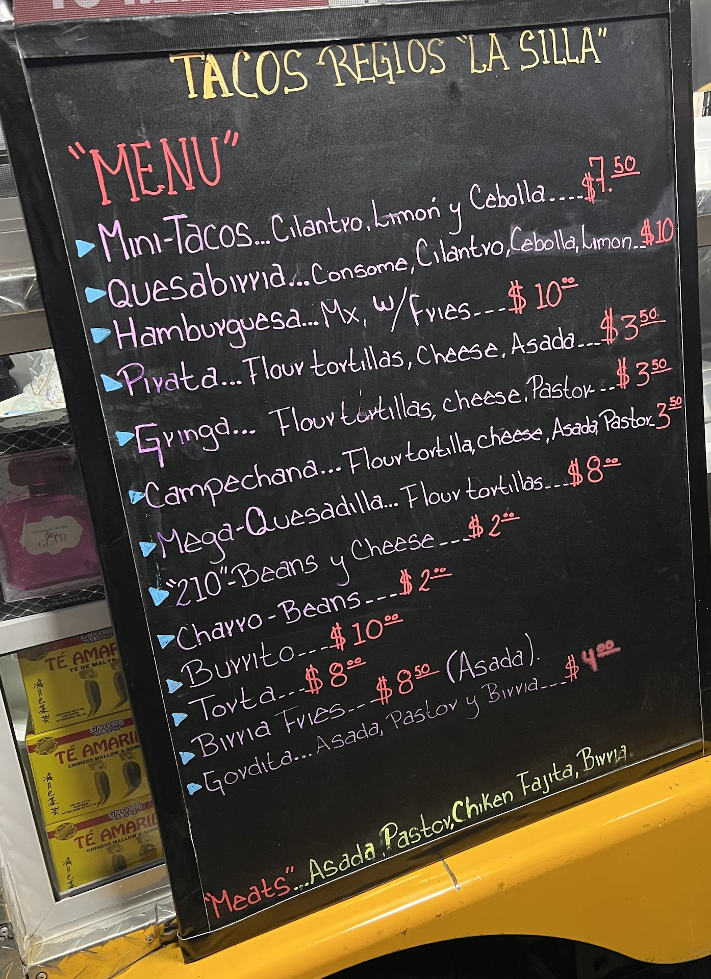 Read moreI love coming to “taco regios la silla”. The food truck owner Rosie always makes the best quesobirrias. The red and green salsa’s are always fresh and spicy, the meat is juicy and tender and the consomé is rich with birria flavor. Rosie was born in Monterrey, she definitely cooks her whole menu like a regia would. I can order to go and expect it ready when I arrive. Sometimes if you ask she can pull out the table for you to eat there. She can make the pickiest eaters...