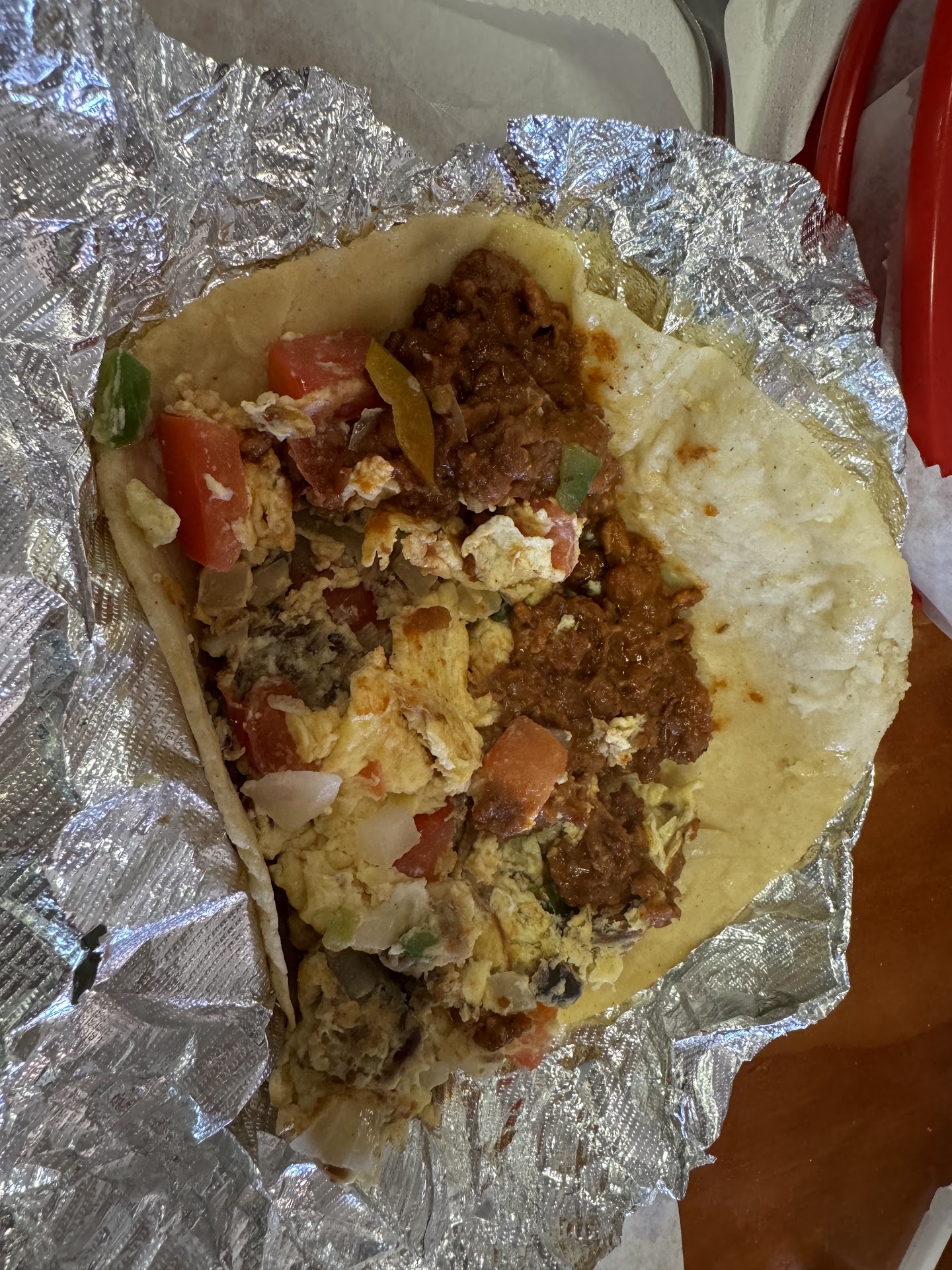 I wish I would have taken a picture of it because it was ridiculous. They then bring me two tacos of chorizo and bean separately and just threw some eggs in it.