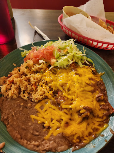 I keep ordering the number nine, which is the Mexican platter, consists of a crispy taco, two cheese and beef enchiladas, rice, beans, and a little bit of lettuce tomato salad on the same plate. Also included are two tortillas, separate, and the obligatory chips and salsa while you wait. This massive amount of food, and I mean good food, really, really good food only costs $5.99. That's amazing.