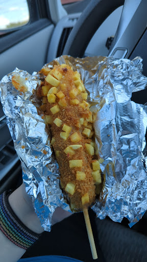 I ordered a potato dog, which is a Korean style corn dog where half is Mozzarella cheese and the other half is a hot dog, this one is then rolled in the batter and french fry bits are on the outside. It was phenomenal! Definitely recommend trying it, though I would say to take it off the stick if you can, as it is a thick sleeper and is pointy at the top.