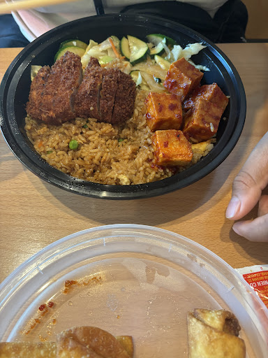 Read more12/8/2024 After seeing this location showcased on Elder Eats, we decided to give it a try, dine in. My son and I both ordered a large spicy (madness sauce) orange chicken. The cashier said this was the spiciest sauce, no spice. My son had white rice, and I selected fried which is a dollar more. Cashier was very nice and asked if we wanted to make it a combo which adds a side and drink, we agreed and both selected the egg roll. My total was $40 for two. Seating is TIGHT. Took abt 15 minutes to get our food. Drinks are self serve. Food came out piping hot. That’s a good thing. However, when a customer has to pay more for fried rice, we expect it to taste like fried rice, with the sear of the wok, sesame oil. This was basically the bland brown rice mixed w scrambled egg, some frozen peas and carrots and maybe some soy sauce. The chicken is so coated in breading and diced small that we couldn’t tell if it was all crust or actual pieces of chicken. I’m sure there was chicken in there, just overly coated for how small the pieces were. Veggies were al dented, par boiled maybe, not stir fried. Maybe that was a miss on my part. The egg roll and dipping sauce were pretty darn good. You do get lots of food, so if I were to return, which is unlikely, I’d get a medium or small. I can’t get over the price. In my opinion, it’s not worth $20...