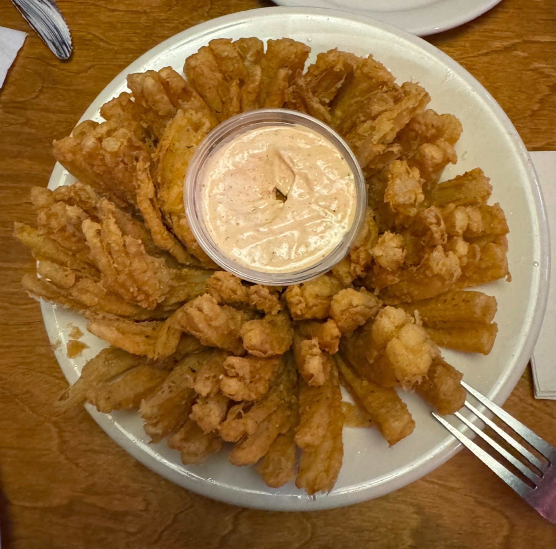 After over an hour we were finally taken to a table. 10 minutes later our drink orders were taken. 20 minutes after that all our drinks arrived and we could place our order. It would be another 30 before our entrees arrived. Never got refills on any of our drinks. The delay might be due to the fact that every 10 minutes or so Texas Roadhouse cranks up their radio so loud that you can't speak to each other at your table and forces their staff to go do some miserable line dance in the middle of the walkway. Peppered in to the radio station (and not danced to) are advertisements and songs about Texas Roadhouse, you know in case you forgot where you were. While you are at your table, a tablet display will flash more advertisements at you and take up real estate on your table.