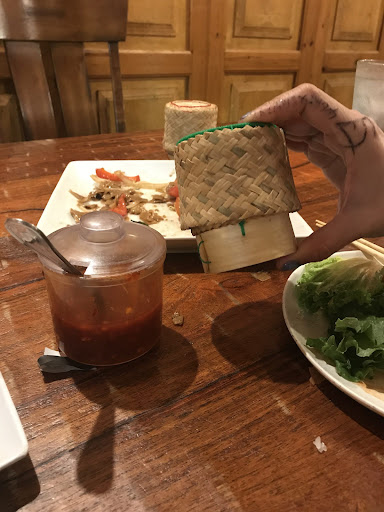 Their papaya salad is horrible. Their papaya salad is Caucasian friendly. Not true authentic papaya salad. They skimped on the papaya and filled it with lettuce instead. It was just a lettuce salad with little pieces of papaya with just some vinegar sauce. If you have ever ate true papaya salad, you know the sauce used is not vinegar sauce ! Sticky rice is $3 per little tiny baskets. See attached picture for size comparison.