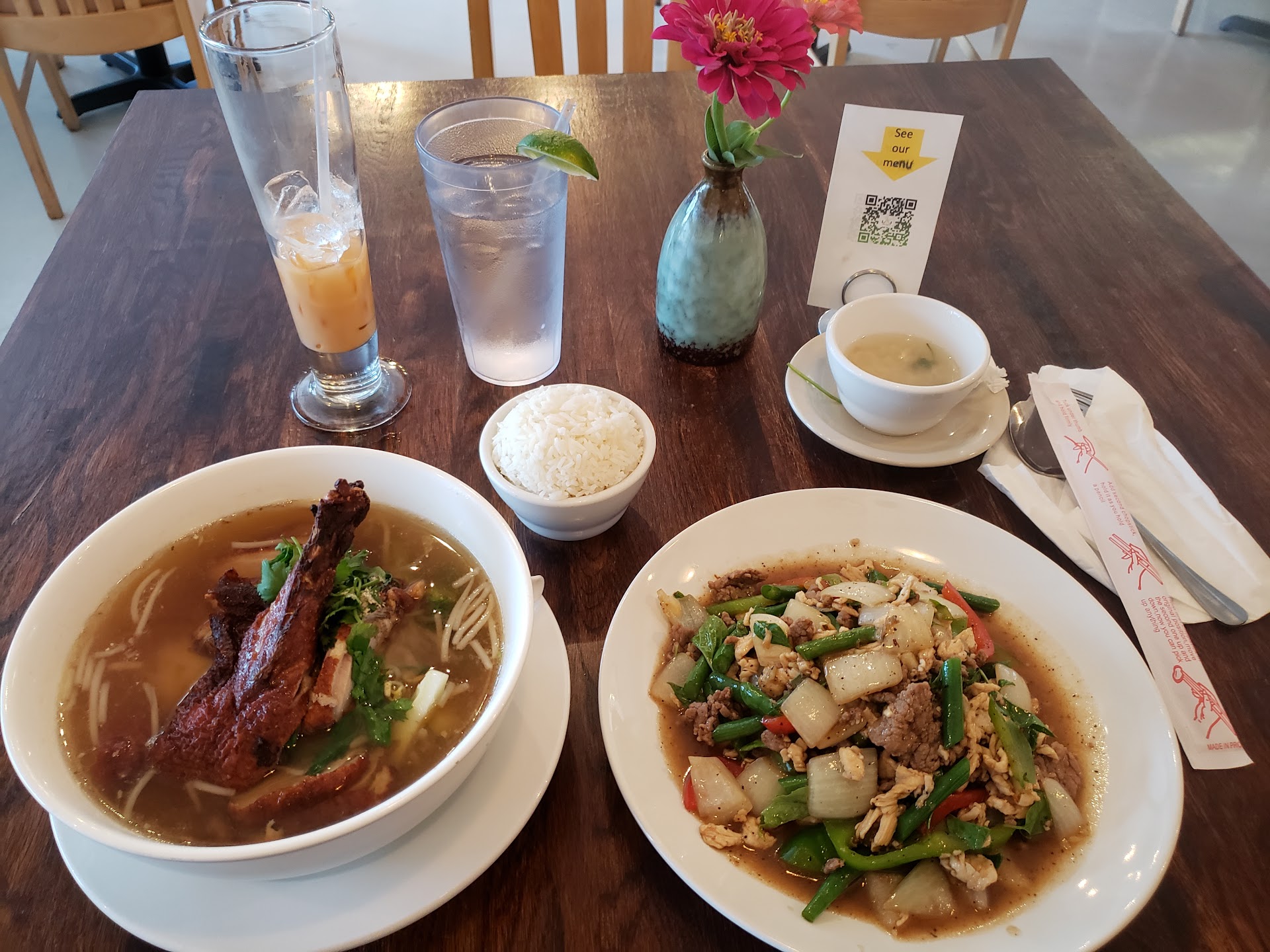 Read moreI went to lunch here with a friend today and was surprised by the change this place used to Thai Basil, we tried it anyway and we're glad we did. I am a big Thai food fan. Ordered lunch on their lunch special, for 2 people with a cup of soup 2 lunch entrees and eggroll for $15. Can't complain. I ended up ordering the Thai beef cashew nut with a side of fried rice. It was delicious and the perfect amount of spice for me. My friend ordered this in chicken and said it was delicious as well. Their heat scale is Medium, Hot and Thai Hot. My Hot and my friends Medium were a perfect spice. I have had Thai hot before and I love spicy but some places can be too hot so I will have to try it next time. Our waitress was very prompt and nice refilling drinks very quickly at any point and didn't break the bank. The place a has the same set up with a very nice relaxing atmosphere and decor was nice also. Thanks again and I...