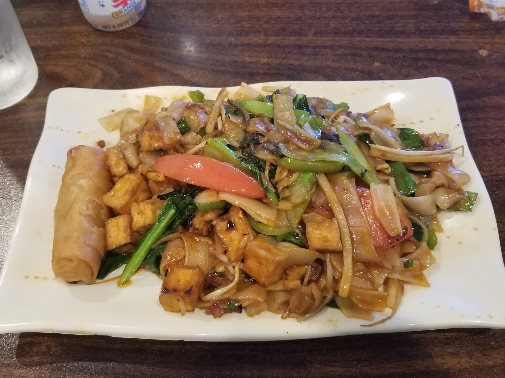 The Seafood Pad Thai was good, nicely sweet and spicy. Seafood specifically in it was Shrimp, small Scallops, Mussels, and Squid. Also, nice, thin strips of Tofu, Egg, Bean Sprouts, and crunchy peanuts. Great, would order again (though probably just Tofu and Egg, how I normally like my Pad Thai).
