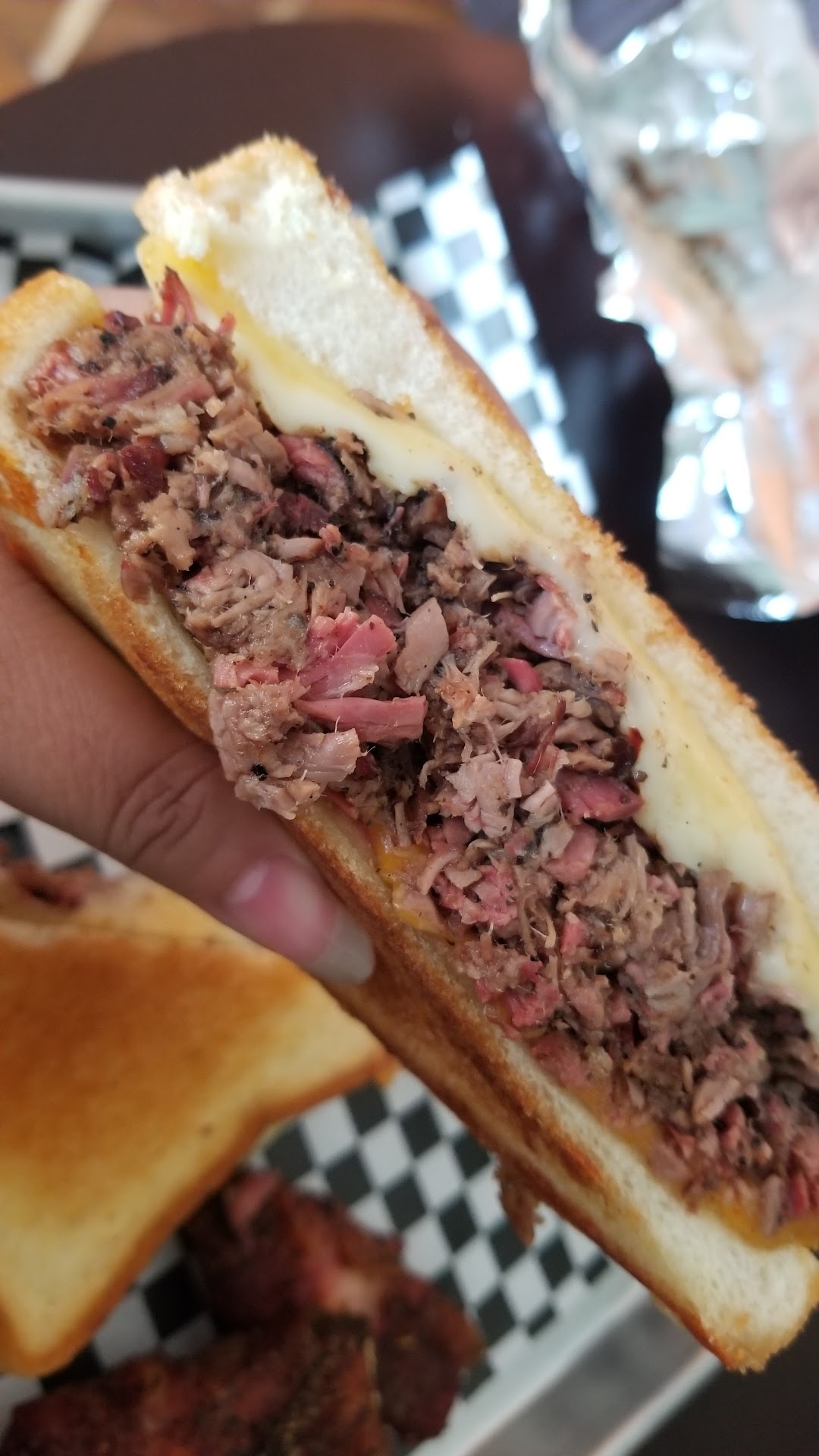 Read moreFirst time here. Fairly quick. Decent price. Came late, were mostly out of brisket.. snagged the last sandwich. Some guy hooked me up w two ribs.. they were also soon to close. Corn was good, charro beans were great. Brisket and Mac sandwich was great. Sauce way too sweet. Out of jalapeno poppers. Bad timing for me. Will definitely return at an earlier time.
