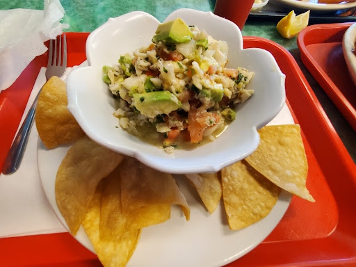First of all let me say that the whomever selected the color palette for the restaurant design was not afraid of it, color that is. The glaring blue boxy building with a large lighthouse painted on the exterior at the corner of Fred. and Huisache slaps the eye into focus like a wet fish hitting one in the face. The interior is of similar color boldness, but with a lime sherbet green made electric under fluorescent lamps that leaves one feeling a little fuzzy and maybe a wee bit seasick. A spartan interior with sparse wall decoration and a concrete floor adds to a galley feel and make it known in no uncertain terms that you are here for one purpose, to eat seafood.