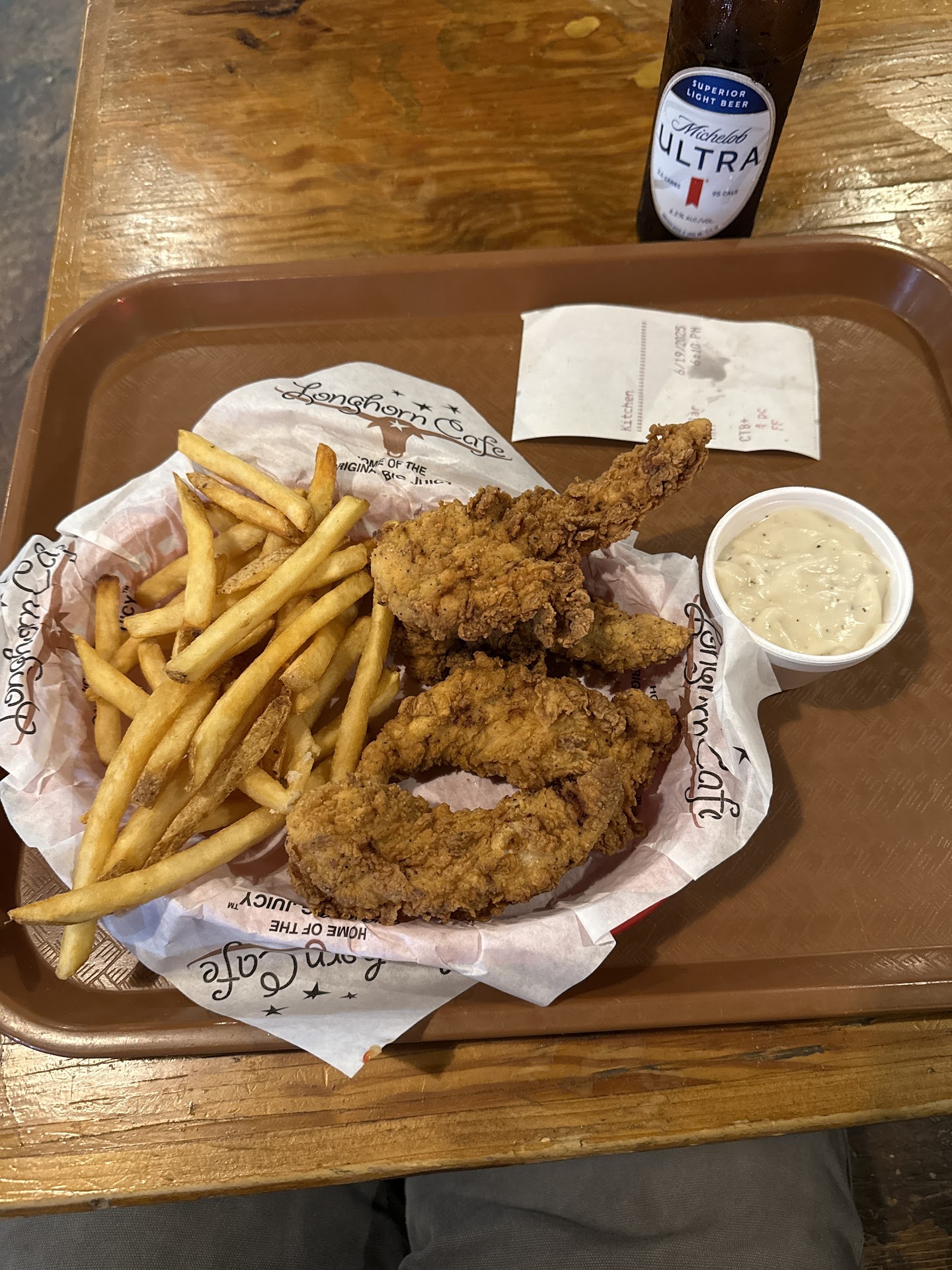 First walked in and the lady behind the counter yells to me if I was so snd so…I said no ma’am . As my husband and I approached the counter she said well what is your name is a snooty tone. I paused and looked at my husband like maybe this is not the place we wanna be at. My husband said his name. She then looked back at me and said well I need your name so that I can Call it when the food is done. There was no high welcome to Lonestar Café. How are you today? There was no welcome. We then went to pick out a seat till our food was done and as we were looking for a spot we noticed 7 tables still had trays and food on them from previous customers. Once we chose a what we thought was a clean booth … we sat down I felt crumbs in my seat. I then noticed the table has ketchup semi dried up on it. So, I wiped it off. I told my husband I was not impressed by this restaurant by the lady up front and her rudeness and the atmosphere being dirty. I then noticed more ketchup on the table. As we were eating our food, no one came around to clean up the tables for over the 30 to 40 minutes that we were there. Three employees look to be on shift. When we were about to leave, one gentleman began to start picking up…I noticed that he was picking up the tables, but never wiped down a single one. That would explain why our table still had ketchup on it and had crumbs everywhere. My husband and I discussed this will not be a place that we will return. We have this thing when we leave we didn’t have a good vibe. We give it a grade, give this place a D Minus. The establishment was not busy at all, and had two other guests besides us. We came in around 3 PM . As for the food, it was OK. It was not something that we would sprint back for. But honestly, the atmosphere...