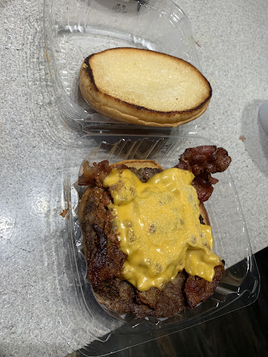 Our food was brought to us, rather than our name being called. When the lady brought my husband's food, she explained that all of my food was overcooked & she told them to remake it. However, she wanted to bring my husband's food so it wouldn't get cold. My husband's $7.99 Angus meat patty had been cut into & was semi warm. The pepper jack cheese, which cost $.49 extra, was very small. The jalapeno sourdough bun, which cost $.99 extra, was cooked & crispy on the inside, and cold, wet, & soggy on the outside. It was inedible. The fries were crispy and warm, but they had an aftertaste that is usually caused by old cooking oil.