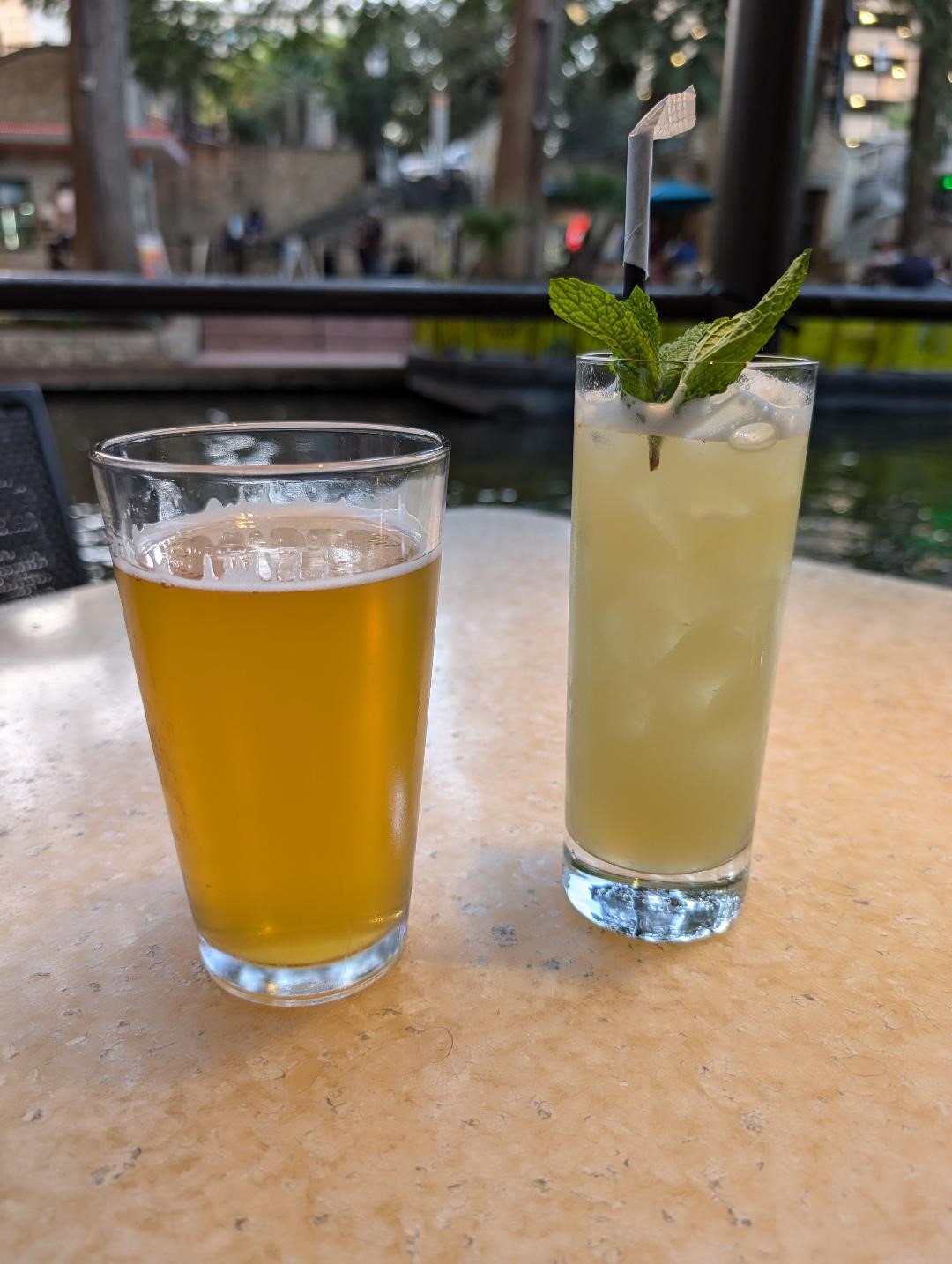 This establishment is located on the Riverwalk, underneath the Hilton Palacio Del Rio hotel, so it’s very convenient to anyone staying in this specific hotel. It has an indoor section that is larger than I expected, plus an outdoor section. I chose the outdoor because I wanted to be near the Riverwalk and people- watch as I dined. But it’s nice to know that such a large interior exists for those days/nights with outdoor dining is less than friendly.