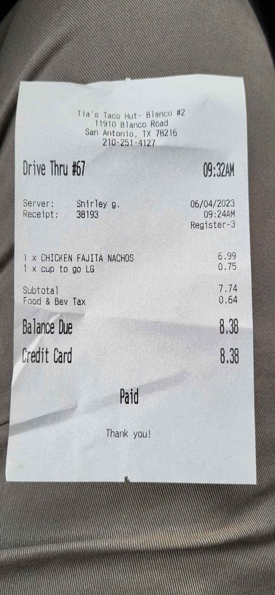 I have been a customer of Tia's Taco Hut ever since they opened up their location on Babcock and Huebner. After years of loyalty and having recommended them again and again, I think their growth is starting to show. Something has happened recently that is changing my opinion about them.