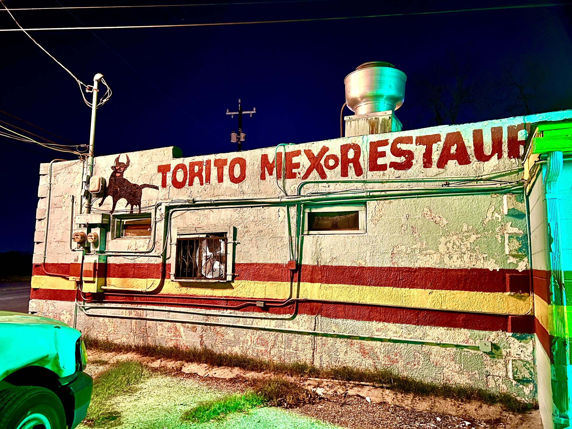 There’s some heavy Twilight Zone vibes on good ol’ South Presa - as a matter of fact, I’ve always said that if a street could be haunted, it would be this three and a half mile stretch of S. Presa starting at Steves and ending at Old Corpus Christi Highway - drivin’ this road at night, preferably slightly chilly with a moonless starry sky (while listening to old surf instrumentals), it never fails to transport me to another time, it’s so quiet, so old, it could just as easily be 1962 as 2022 - maybe it’s the width of the road combined with the age of the buildings, lots and lots of still intact 1920s-1950s structures, hardly anything built after 1970, an absence of glowing billboard(s) and barely any streetlights at all - it’s what I would imagine a highway in 1942 (in Los Angeles) looking like - and for every dimly lit semi-occupied building there’s about three or four completely dark and seemingly abandoned ones - if you could turn an Edward Hopper painting into a real place, it would be this dark and dreamy strip of South Presa - if the plot of THE POSTMAN ALWAYS RINGS TWICE happened in San Antonio, it would have happened here on this stretch of South Presa (and probably at the Motel 3 Johnson Court) - this is the old San Antonio, the original San Antonio - (and) then down there by the ghostly Hot Wells Ruins is one of my very favorite places for breakfast for dinner, the good ol’ time-warped Torito Mexican Restaurant, built out of cinder blocks and (also) looking like something straight out of an old 1940s film noir (and) which (also) in my very humble opinion has some of the best chee-lah-key-less in town - I have love in my heart and also in my stomach - this is...