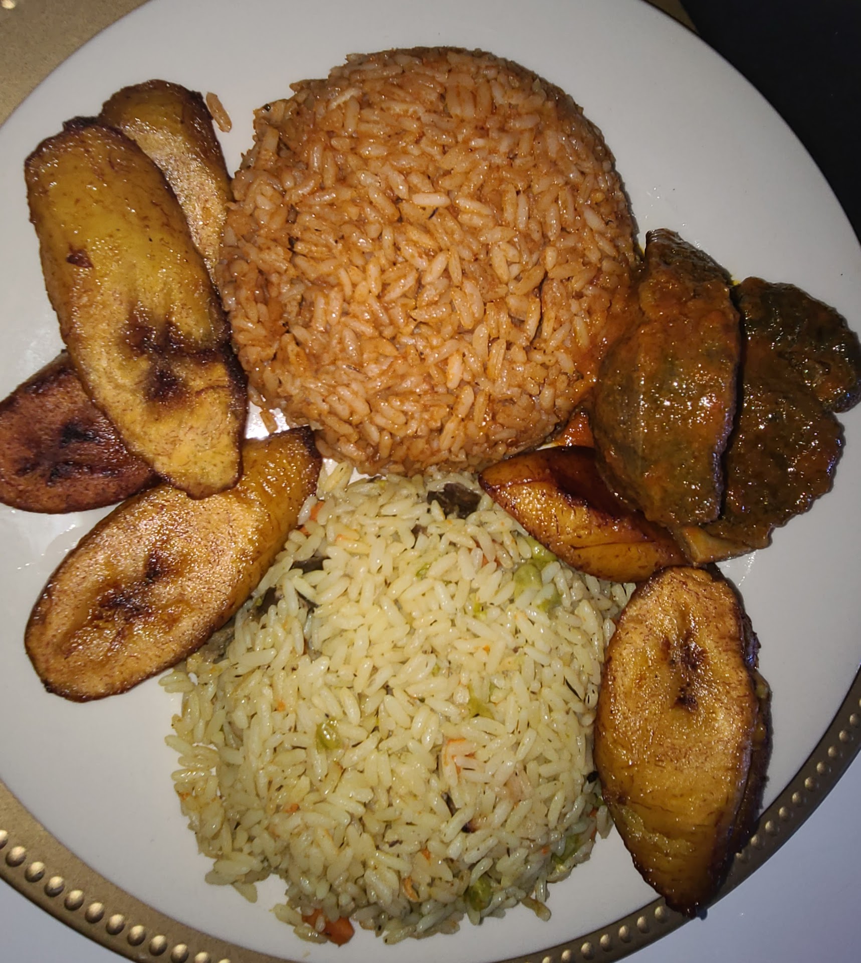 Read moreAwesome Nigerian food! The owners are also very friendly and took the time to talk to us when they saw that we were there for a Nigerian friend's birthday party but not all of us were accustomed to eating this style of food all of the time. They offered to explain if we had questions and were delighted to hear how much we enjoyed the food after we had eaten. I recall that the owners expressed that making this food and owning the restaurant is not just a job but a true "calling" to them, one which they are passionate about to the point that it does not even always feel like working, and I believe that really shows! Would highly recommend! The plantains were also DELICIOUS! Some of the best I've had. I will say that I have honestly had better jollof rice elsewhere, but Ultra Kitchen's is still very good. I think I should have asked for a higher spice level for my personal taste, and that probably would have helped significantly (I only ordered the "mild" spice level, and it was much, much softer than I was expecting. This is probably a good thing for most new people to African cuisine, but if you want more heat in your food, definitely go for a higher spice level). There was also a little bit of a weird issue with the dining room having multiple different songs playing at once, which was sort of weird for the atmosphere, but that could have just been an issue on the particular day we were there.