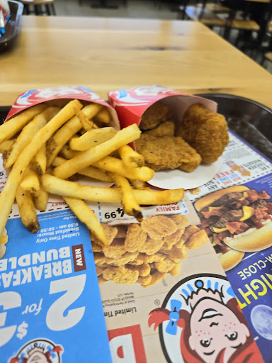 Read moreThey always get my order wrong here, lately. This last time the food was definitely a leftover, the chicken patty too small for what is supposed to come on the classic big bacon cheddar, there were no onions and the bun was like a generic low quality bun I could get from the dollar store instead of the large fluffy cheddar baked bun that’s supposed to come on the sandwich. I asked for no fries and 2 cookies and got fries and 1 cookie. Checked my order as fast as possible and didn’t notice at first as I was rushed out of the drive thru by the unfriendly worker, turns out they didn’t give me a receipt either so they wouldn’t fix my order when I came back around to the window. They might have been new as they didn’t even know what was on their own menu as I had to clarify my initial order twice, repeating the name and the number on the menu. I’ve been going here every once in a while for 12 years and the quality has gone down a lot, not to mention they’ve replaced their nice employees with ones who barely treat you with respect as a human regardless of if you’re polite and talk with manners to them. I’m done with this location. Hire people who can learn their own menu, give receipts, bag the correct order and who can say have a nice day or something instead of glaring at me and waiting for me to hurry up and get out...