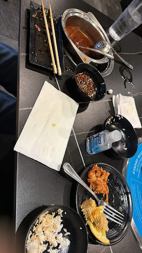 Read moreI have been to a few K BBQs and know my always around. When this place was in soft opening I had to go. Because it was my birthday it was perfect timing! We went pretty early for dinner and the fun started! The entrance is super cool and welcoming. You are welcomed at the front desk to check in on an ipod and mark your reservation party. There will be reservations later on, but walk ins were the only option at this time. Upon seating at the table, the person or host seating you explains the process of ordering. And at the table you see the round grill and a cool vacuum above it for smoke ventilation. In each corner where the table seats 4, there's a spot for a hot pot. On the menu, which is all you can eat, you choose up to three items to grill and also to put in your hot pot. The one piece of information which would have been nice was that the controls for heating up the hotpot in the corners. There is an on switch and also offers a timer which is handy. The levels go up to six so keep that in mind. Now the food. There was an island that offers dipping sauces and limited appetizers, I personally loved the house sauce and added cilantro. The list of things they offer is very very extensive on both the grill and hotpot. You can get baby octopus to tofu. They offer a few marinated options and the garlic shrimp is too garlicky and I love garlic. It was just too overwhelming. We had to drop it in our hotpot which helps but it was not meant for the hotpot. Instant ramen is offered too and it makes sense but I would have preferred at least fresh ramen. But tonkatsu broth was perfectly done and makes up for it lol. The cuts of meats are pretty perfect for a serving to just try. Also there's no leftovers to take home. You will be charged for anything left over and you have a 2 hour sitting time, which is plenty!