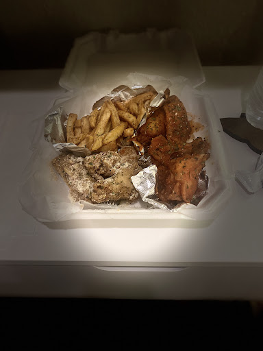 Nice and crispy. Great flavors (tried lemon pepper and garlic parm dry rubs). Fries are delicious (and I usually don't care for fries). Onion rings are good, too, AND the waffles were pretty tasty. Don't even need syrup.