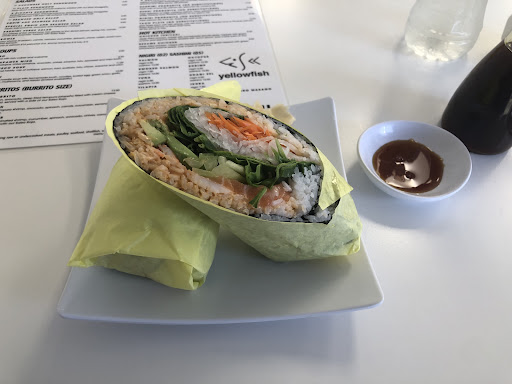 yellowfish is a sushi joint in an unexpected place -- it's where that random little drive-thru fruit cup place that i passed by so often used to be. from the outside it doesn't look like much, but the inside is surprisingly roomy for how tiny the building looks. it definitely doesn't look like the typical sushi place either and has no inkling of any japanese feel to it. there were no asians in the entire restaurant and half the people there had other food (starbucks, taco bell??). my expectations weren't too high but based on the handful of previous yelp reviews, i was hopeful! as a sushi-loving med student, confined to life mostly in a 2-mile radius bubble of school/library/home, i was heartbroken to find that there were no good sushi restaurants in the area. it doesn't help that san antonio in general has pretty terrible sushi, but all the decent places are at least a 20 min drive from the med center. so when yellowish popped up, i was excited to try it out!