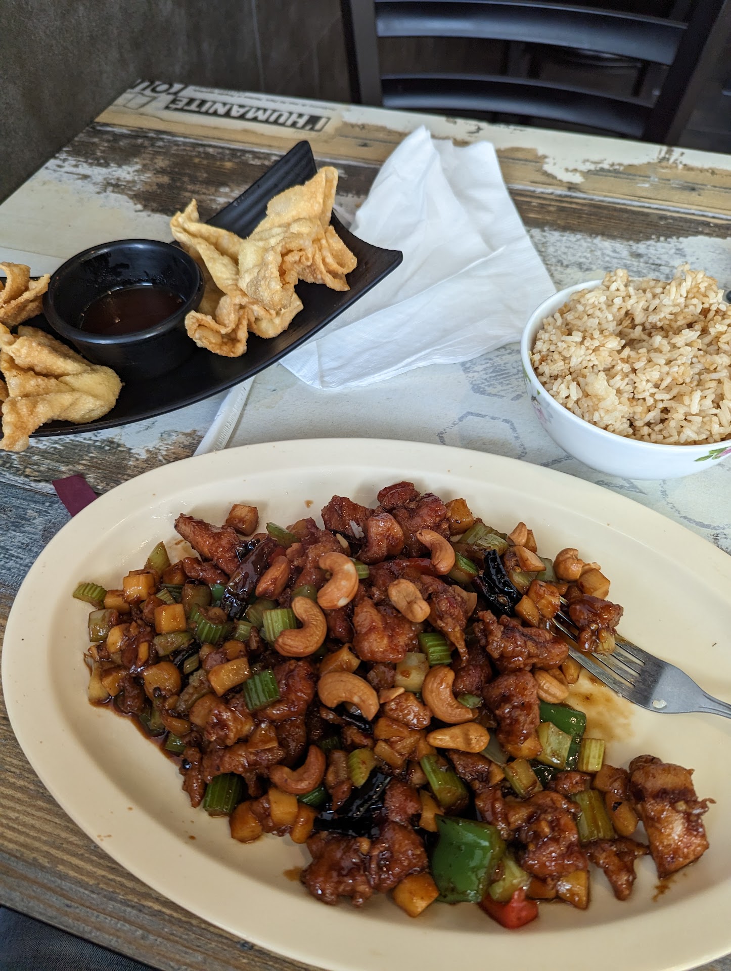 It's weird to say, but the sweet tea was the most flavorful part of my entire dinner. We both had egg drop soup and sad to note no flavor. They had hot oil which was good but didn't really help, just burned a little more without the addition of flavor but whatever it's hot oil. We also tried the fried dumplings which were very tasty and I suspect that's because I don't think they make them in house. I would put money on being able to buy them at sam's or Costco. They were plainly frozen and not fresh at all. You can tell because the wrapper was tough with just the outer shell crispy. Next I have the chicken curry, which is know for it's freshness and delicious flavors using fresh vegetables and usually almost a soup. Well, curb your enthusiasm because this was the dullest, most boring, chicken curry ever. The only 'flavor' was how spicy it was. And to top it off, it was obviously just premade in a big pot and a scoop or two was placed on my plate. The chicken was well over cooked. The side of fried rice was fine but nothing earth shattering.