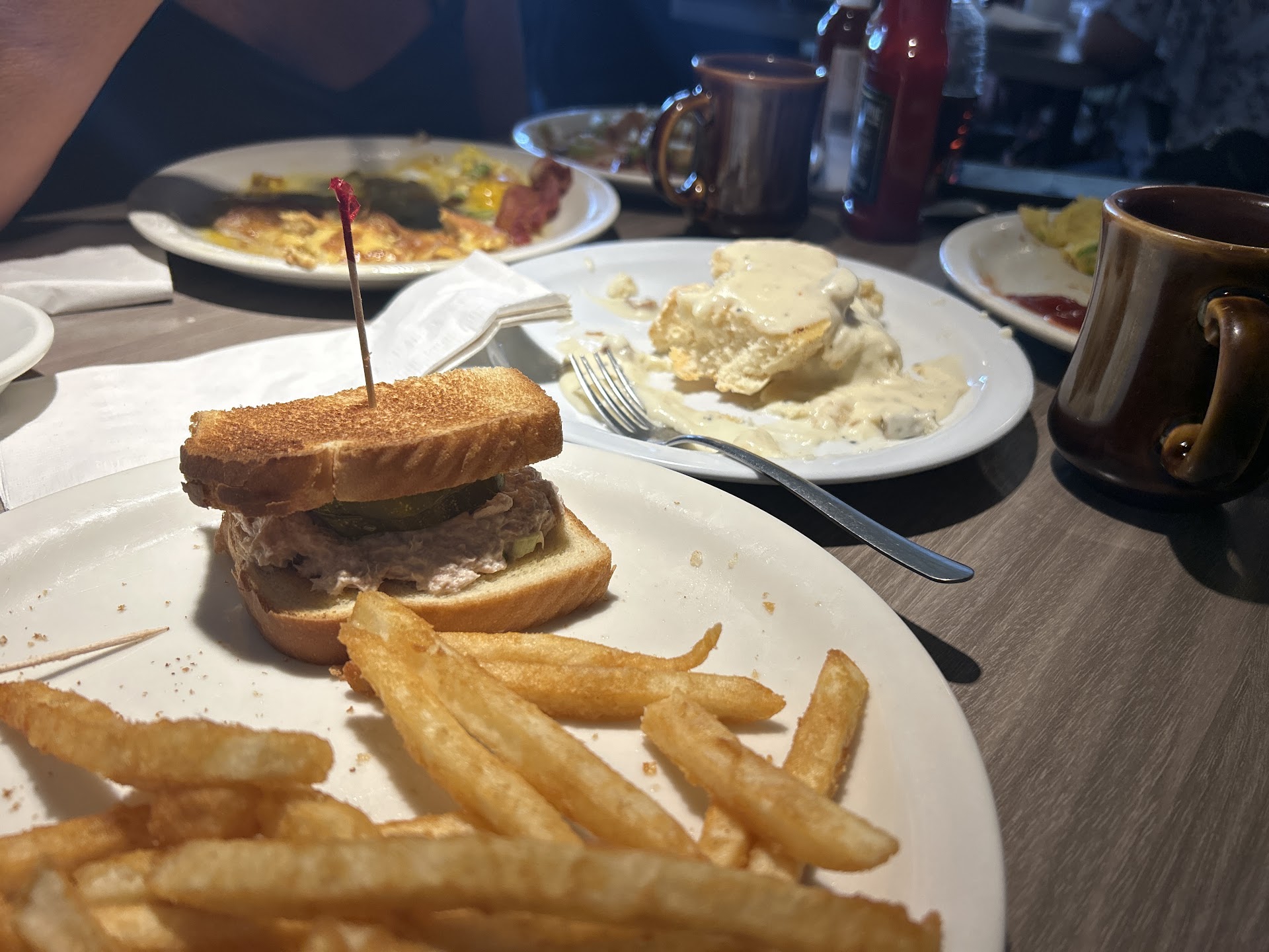 Read moreWe came here a few months ago and I remember having an average experience, but after this second visit, we will not return. We got a table right away. I don't think they have a designated host, it seems like a waitress walking by assigns a seat. We ordered our drinks and eventually our food. Our waitress seemed tired and impatient. She'd ask us a question and take off before we finished answering; therefore, getting parts of our orders wrong. A different waitress brought us our food, and she too seemed on edge. The restaurant was hot. My family was sweating half way through breakfast. We later found out the A/C was down. The food was subpar: coffee was watered down, kid's apple juice was warm, sliced American cheese instead of cheddar, the biscuits and gravy tasted canned and microwaved, the "homestyle" potatoes seemed like leftover baked potatoes, the pancakes tasted like Eggo... then there was a hair in my husband's food. We were done. This was the cheapest quality food, even my 5 yr old wouldn't eat it and we paid just as much as any...
