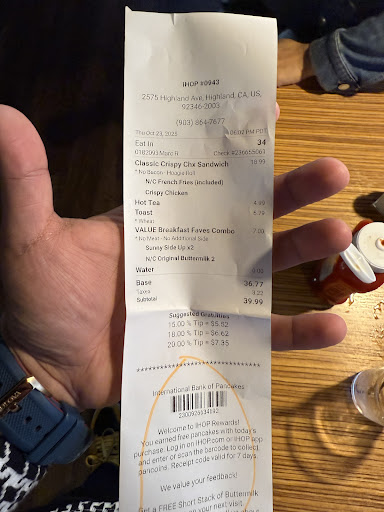 Read moremy family was quickly seated but when the waiter with the glasses took our orders, he didnt write down our order, he just "memorized" our orders. my son decided he wanted hot chocolate after the waiter had first brought our drinks. so when we asked the waiter for hot chocolate, he left and never came back with the hot chocolate. when our food came the waiter didnt bring our utensils either. we waited patiently for over 20 mins for him to bring utensils and he never did. unfortunately, our food got cold. i also noticed the waiter with the glasses attended the family more that came into ihop after we arrived. i had also ordered another combo with my pancakes and never received it, because the waiter "forgot" that i had ordered it, because he didnt initially write down the orders when they were ordered. it took another 15 mins to receive the forgotten order. the waiter eventually gave us utensils after being asked 3 times for them. our hot chocolate was also finally given to my 8 year old son after waiting for an hour. after receiving all the food, i had asked for two sprites and about another 10 mins the waiter that i had asked for the sodas came and asked if we needed anything else. i was in shock, because i had just asked him for two sprites before that. i replied we are just waiting for our sodas. he replied back, "oh yeah im sorry ill bring that right out". i paid $103 for cold food and unprofessional customer service. i dont know if the waiter was new, overwhelmed, or on drugs. but thats the last time ill ever go to this ihop. do yourself a favor and dont waste your time here. go to dennys instead. if i could give this place zero...
