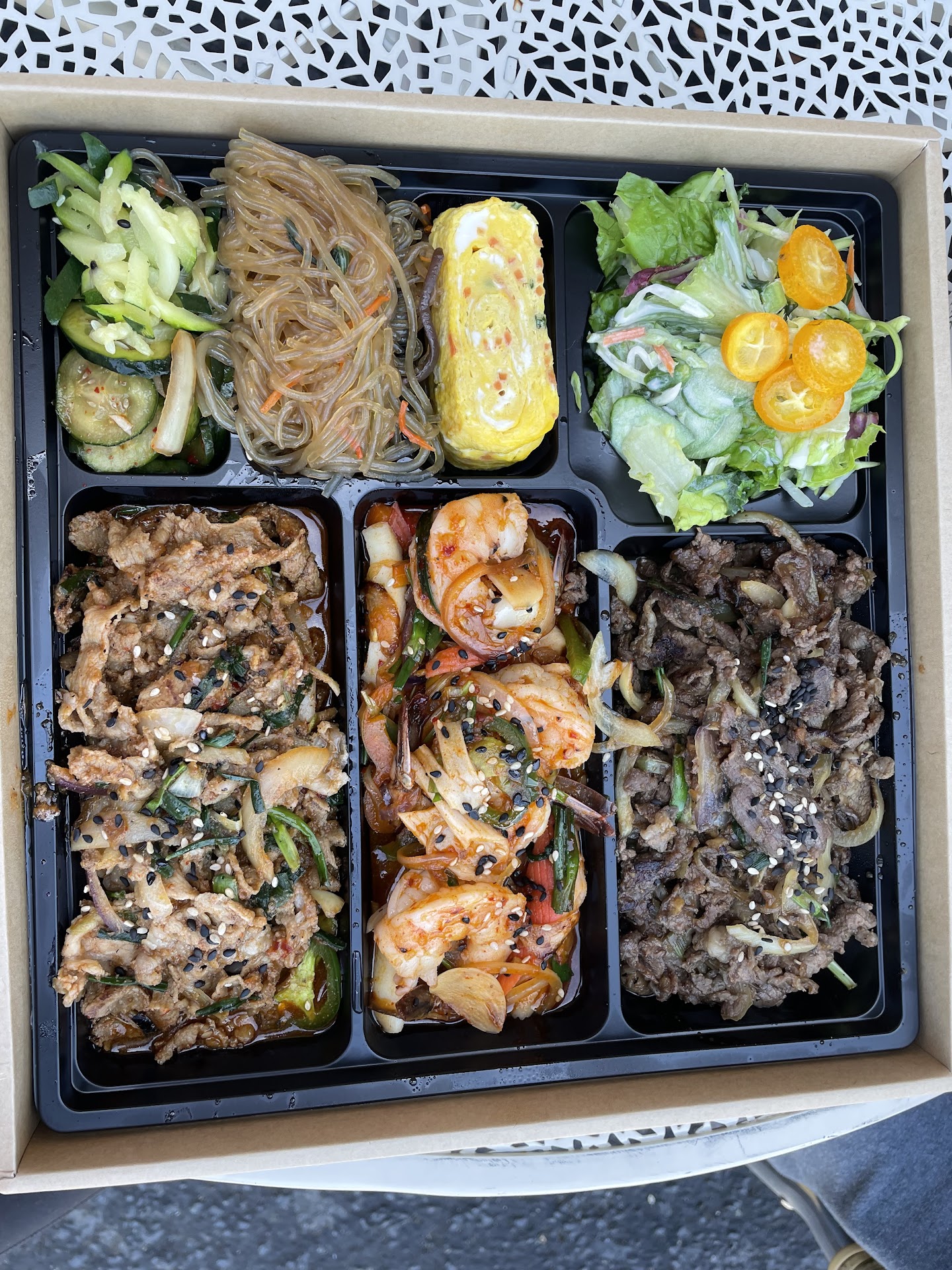 I just visited this restaurant for the first time half an hour ago for takeout. I ordered the Mama #1 which has the beef cuts in it. I was not expecting this meal to have so much yummy banchan in it. The beef was sweet and easy to eat, but the banchan I tell you! The kimchi was on point, the pickled cucumbers were a treat, eating it with the rice. The glass noodles were the most unexpected of them all. I love Korean glass noodles, and they were perfectly made. I was really happy to find this on a takeout meal because its rare, even in LA. Then there were more pickled options just to round out the flavors and textures. I am definitely coming back to try the different meats in a meal. Yes, you'll pay close to 20 for the plate but putting all of those options on a plate isn't easy and is not cheap. You will get your money's worth (and superior digestion as it is with any Korean food). If anything, it's a great lunch meal option for your payday or when you want to treat yourself. (No, I didn't take pictures because I was too busy eating that whole plate up with joyful abandon). Go and check this place out...