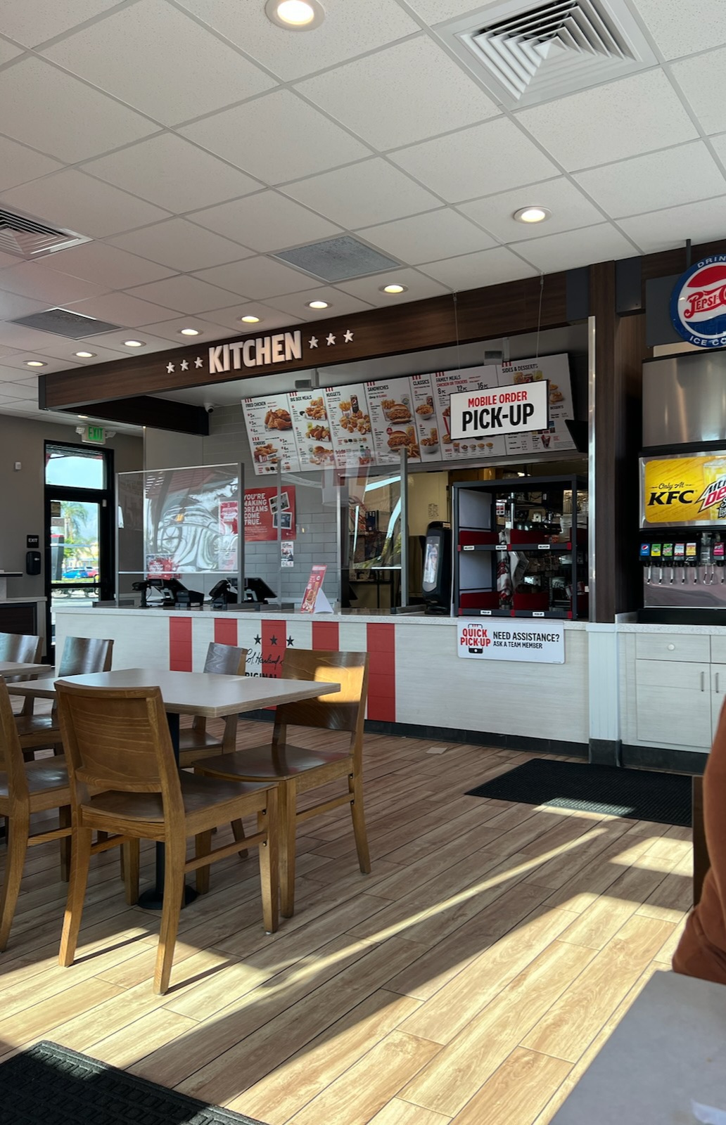 Read moreFirst time to this new KFC at ninth and Waterman. I was so happy that one was finally established near my daughters place. I had tried to order a two piece dark meat combo only to be told that they were out of all dark colored sodas and didn’t have any original recipe chicken. So I ended up getting two crispy pieces of the dark meat chicken ala cart and a side of coleslaw. The chicken was perfect and I loved it. Now for the bad part. I don’t understand how these KFC establishments run out of the very things that people want to order, i.e. a regular Coke and original recipe chicken. I ended up being charged for the original two piece combo even though I didn’t get any drink with it. So I’m giving three stars because the crispy recipe chicken was cooked beautifully and I got a biscuit with it also. What’s funny is this is not the first KFC I’ve been to that runs out of the most popular things on their menu - CONTINUOUSLY! How are they still able to stay...