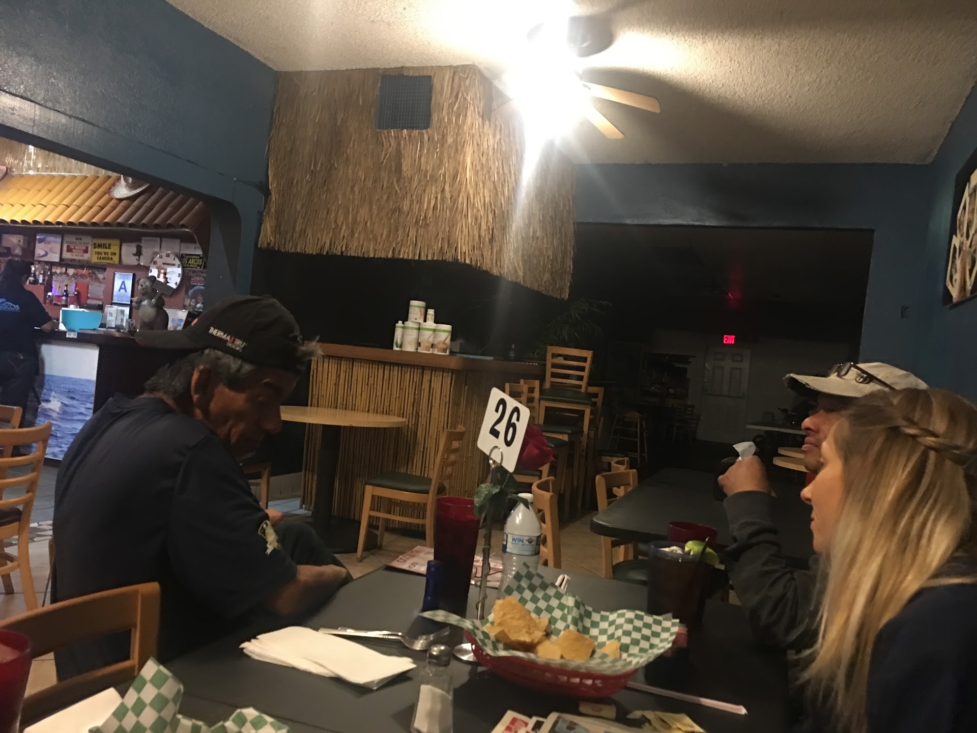 Came here with my fiancee because we have been looking for a place that sells good seafood. We came, got our drinks quick but after that we hardly saw the waiter. We were waiting for a while to get service (the place was empty, it was only us and another couple in the back). So after a while of waiting we decided we didn't want to spend our money on anything expensive mainly because of the bad service. So we just got something small so we can eat and just get out of there quickly, after a long wait to get some service we waited an additional 30 minutes + for two simple burritos which tasted weird. My fiancee wanted a refill on his drink, guess what? No waiter around. We waited for someone to check us out and nothing, we could've just left without paying lol. But we didn't we went up to the front and waited till the server was done talking to bill us, he had no idea what we ordered so he asked us LOL ridiculous. Plus if you have a big butt or you're heavy set I wouldn't recommend this place, the seats are so tiny and uncomfortable. I had to keep squirming around and stand up because it was...