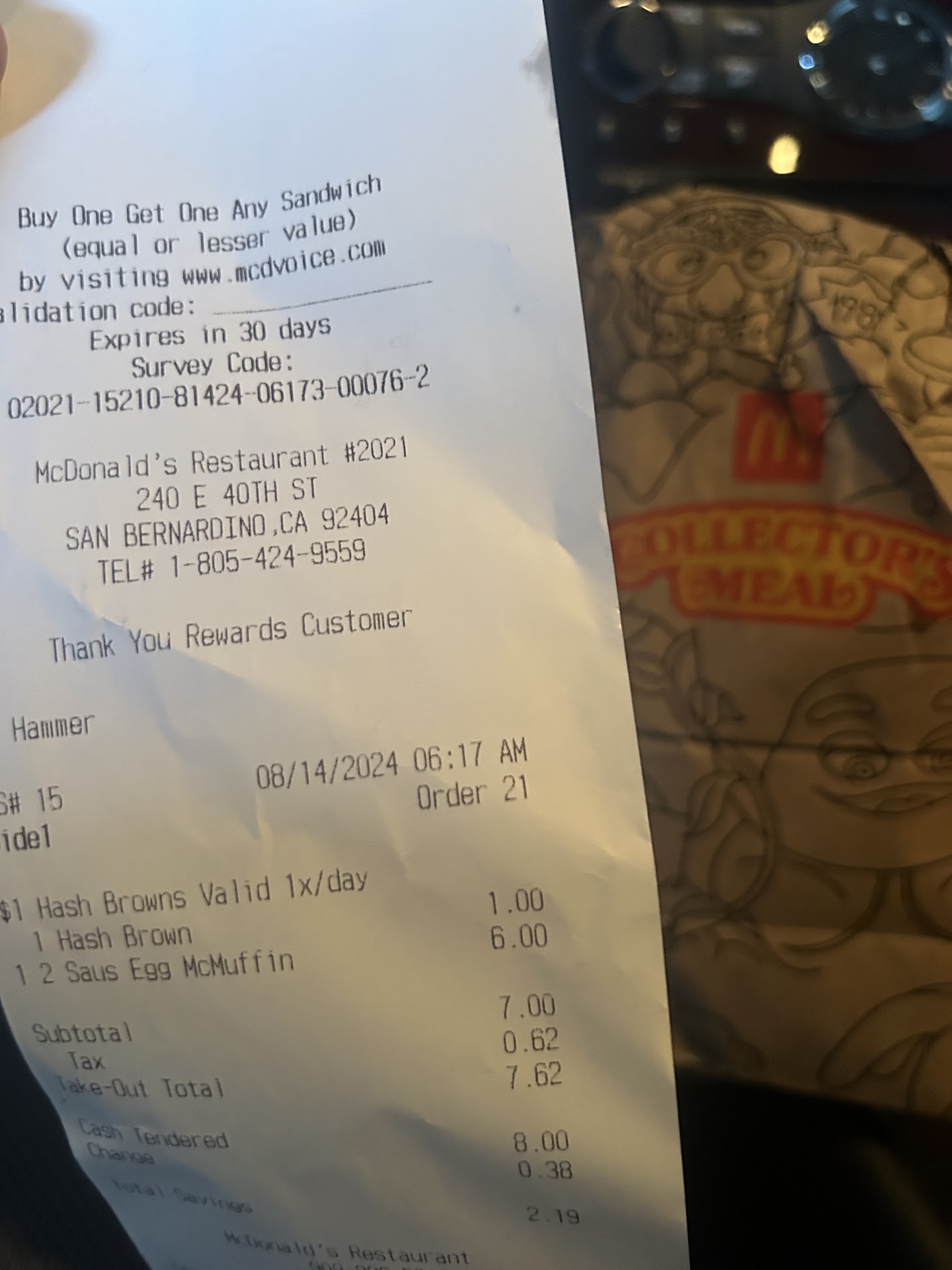 Read moreThe drive-thru line was wrapped around to the street, so I tried ordering inside. I waited in line inside, with only 3 customer in front of me, for 10 minutes. Witnessing the worst cashier in history, I tried to make it easy on her, with my single order. This is something I purchase every day in South Orange County. She fumbled for a few minutes, and when I could no longer see my order on her screen, (which is how I could tell she was pushing the wrong buttons), she told me to go ahead & slide my Arch card. Against my better judgement, I did, and then it said... wait for cashier to complete my order. She told me it didn't go through. She could NOT figure out how to order finish the transaction and finally requested help from an equally inept cashier. That person then tried, but failed. She looked up at me and said "we don't sell the Large Hazelnut Latte any more." In order to keep my temper in check, I simply walked out. When I got to my office, I checked my Arch card account and not only was I charged for my latte, but I was double charged!!! After being online for a half hour with the McDonalds Arch card customer rep, she told me it's a franchise, so she would have to pass the information on to that owner. I'm still waiting... NEVER, NEVER, NEVER go to this store. Waste of your time & money, and who knows what your food will be like (even for McDonalds). I can't review that because I NEVER RECEIVED...