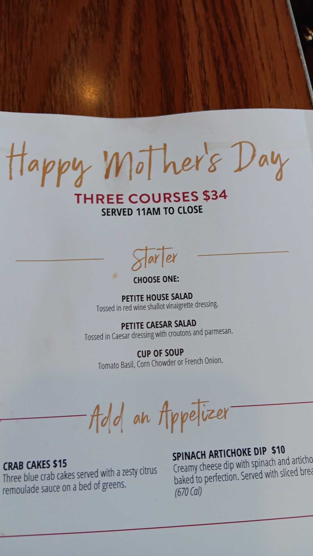 Read moreOn Sunday, Mother's Day my family and I (party of 5, all adults no children) went to lunch here. I called and was told they were accepting walkins and the wait would be approximately 30 minutes. (thanks to text messages we have exact times) Put our name in at 12:21pm and was told the wait would be about 30 minutes. We continued to wait until we were seated at 1:36pm. First and foremost, we understood it was Mother's Day and very busy, we also understood there were people with reservations who got to be seated first however, for example a party of 7 with reservations at 1:30 (pays to sit close to the host) were seated at 1:07pm. After we were seated we waited 9 minutes, and many many staff walked by our corner booth in the bistro by the kitchen, before we stopped a server and asked politely who our server would be. She responded she was and would be back shortly. She was. When she returned we were ready to order drinks and food at the same time due to the concern of the long wait and an appointment time getting close. Our server advised us that the kitchen was behind and that it could be a long wait before it was ready. We asked her advice if she thought we would have enough time to eat if we needed to leave by 3pm as by the time she returned it was 1:57pm. She said she thought we would be okay. Please keep in mind the limited menu due to mothers day. We ordered (no special circumstances or replacements requested). Shortly after this, apparently a manager of some sort, approached our table and, for lack of a better word, confronted us. She started the conversation accusatory, condescending, and became ruder as she spoke. We never had a chance to speak or were asked what happened during the 3 minutes of reprimand we received. She told us that we needed to be patient and that the staff was doing the best they could and that we should have known better than to rush. She never asked us what was our concern, the situation, or anything. She came to our table, scolded us and walked away before we were able to respond. I would like to say that we were 100% aware of everything she scolded us for and asked several staff members politely their opinions when it came to time and service. We never got frustrated or short with any staff member, all having service backgrounds we understood the situation and in fact made an effort to be polite to our servers. We never received our appetizer, our soups came with our food which came out quickly at approximately 2:31pm. I made a point to apologize to our waitress if she felt that we were being demanding or rushing her; it was not our intention. She said she didn't feel that way but obviously she spoke with her manager to have her reprimand us during our Mother's day lunch. We finished our meal and walked about by 2:52pm. Plenty of time to get to our appointment with no reason for the manager to scold us at our table. On my way out, I stopped to speak with another manager, to advise him about how we were spoken to, he apologized for the situation but clearly had written me off within 10 seconds of speaking which just made it very clear what management allows as acceptable behavior. I would like to point out several things... if we had been given a better estimated wait time, over an hour, we would not have put our name in to stay which could have avoided the whole situation all together. Just because everyone is busy and it's hectic doesn't give anyone the right to assume all customers are rude and impatient and treat us that way. Disappointment is an...