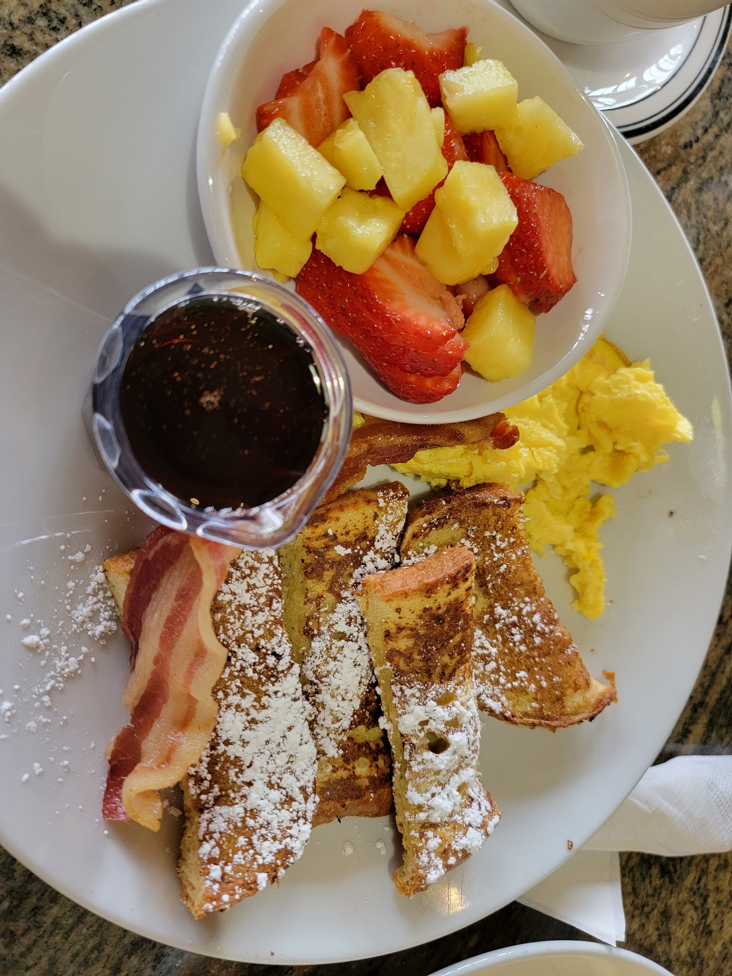 I regret to say that I had forgotten my waitress's name but she was very pleasant, professional, polite and attentive. I had ordered the Florentine eggs benedict with avocado and an iced tea with a white peach flavor add in and an iced water with a lemon wedge.