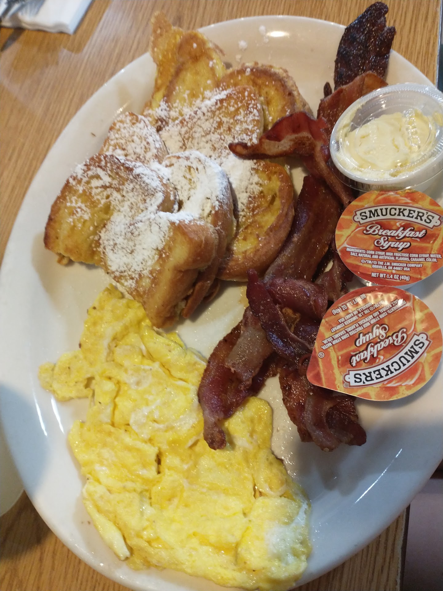 I had the classic club sandwich with fries and an iced tea ā crispy, fresh, and perfectly satisfying. Moses went sweet with the French toast special and coffee, and he didnāt say much while eating⦠which says everything.