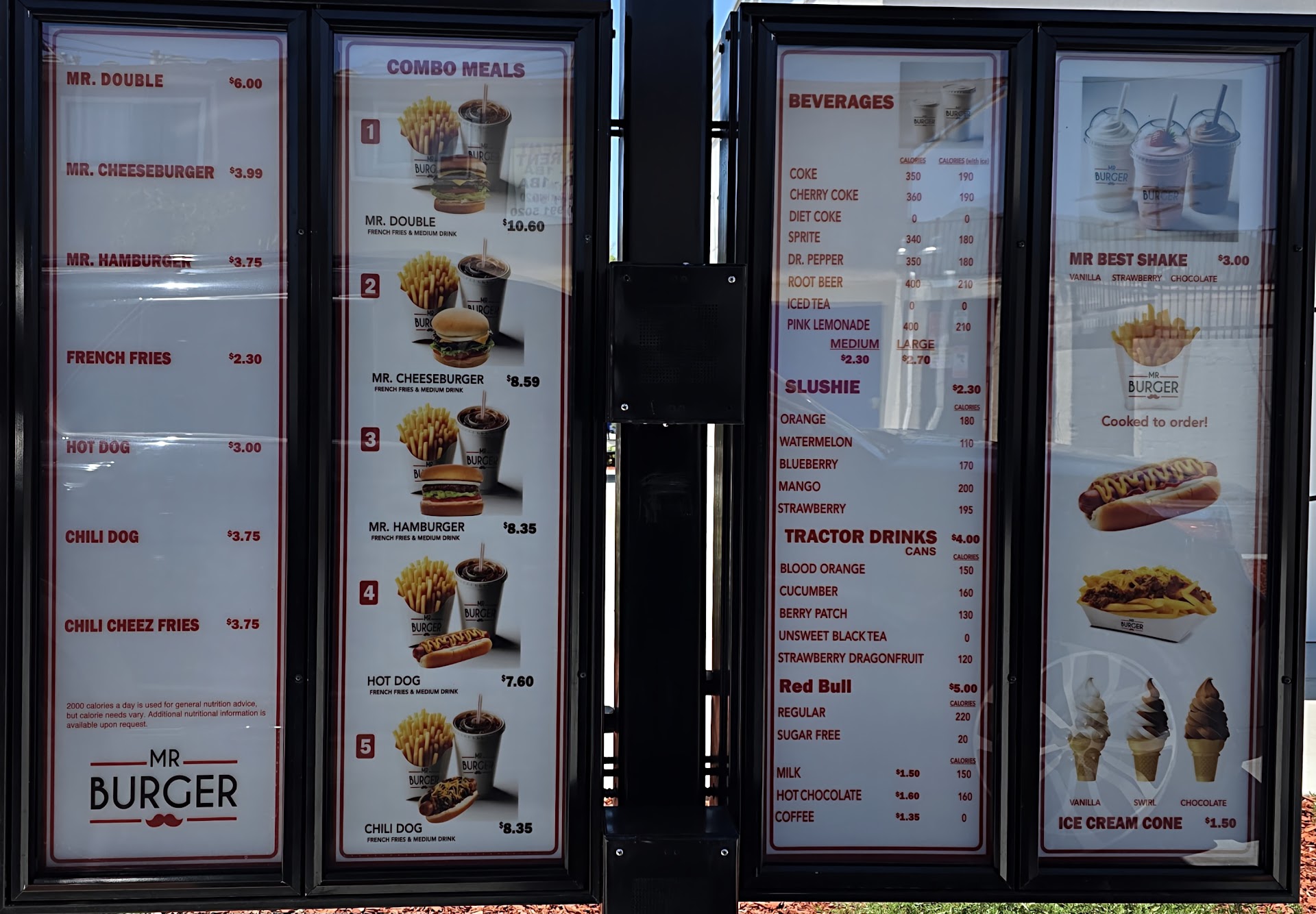 Read moreI stopped by today to try this place out and I was not disappointed. I apologize about it being long I love being detailed. FOOD: The food was good i got the Mr. Double combo with no cheese and large coke and substituted the fries for chili cheese fries. I burger to me was just that a basic burger but it was good. To me the star was those chili cheese fries they were in my opinion really good ill was honestly surprised. I will definitely be getting those again. SERVICE: The service was great Carmen helped me out and she was a delight. There are just some people who are just meant for customer service and shes definitely one of them. She's got an amazing friendly personality and even if she doesn't like being in customer service she fooled me lol. She just right away was very welcoming absolutely A+ to her. ATMOSPHERE: I went thru the drive thru so I cant say much but the atmosphere in my opinion ties back to that customer service keep up the good work you guys I cant wait to see your lines...
