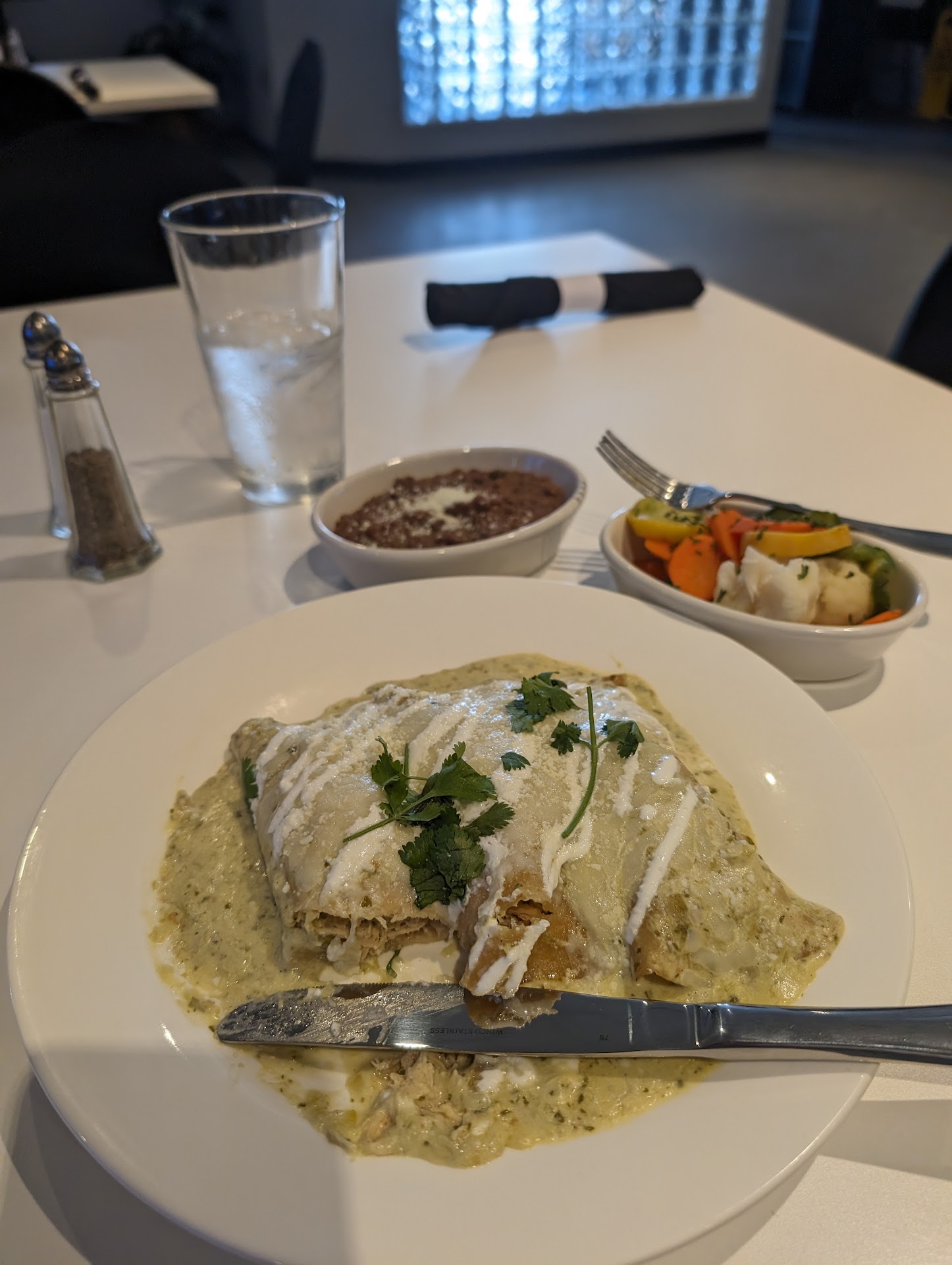 This is a new restaurant only open 5mo. Looks very nice on the inside. Outside, it's kind of a dark vibe. It's in a residential area, so it can be a deterrent. Food wise, they should revise their menu immediately. I would love the food to draw me back. The food (dishes) needs a theme to it, and its presentation is just food on the plate. The plating decor, flavor, texture, and garnish ingredients need to be in unity, and the main course is the center focus. I'm in no wise being negative. I'm speaking from a trained professional chef view from the dining experience I had while dining there. Oh and the Salsa Green or red is amazing. I couldn't stop eating the salsa that's a winner! This restaurant has so much potential. They are right there, just a few adjustments, and they will be a got to place at any time. I will return for maybe lunch or breakfast or brunch. Let's please support this new business. The owner is a very nice gentleman and staff. Also, they do have a setup for live music, which really nice. If you like jazz, this is it. I would just call and ask if anyone is performing. They do have karaoke as well again call to find out what nights. They have a really nice banquet hall for events, and you have to do nothing bu5 show up they have packages where they supply everything. So let's get out and support this new small business restaurant that has a beautiful facility. Again, this review is only to serve as a helpful observation and to let people know about them a new small business we need to support. Best...