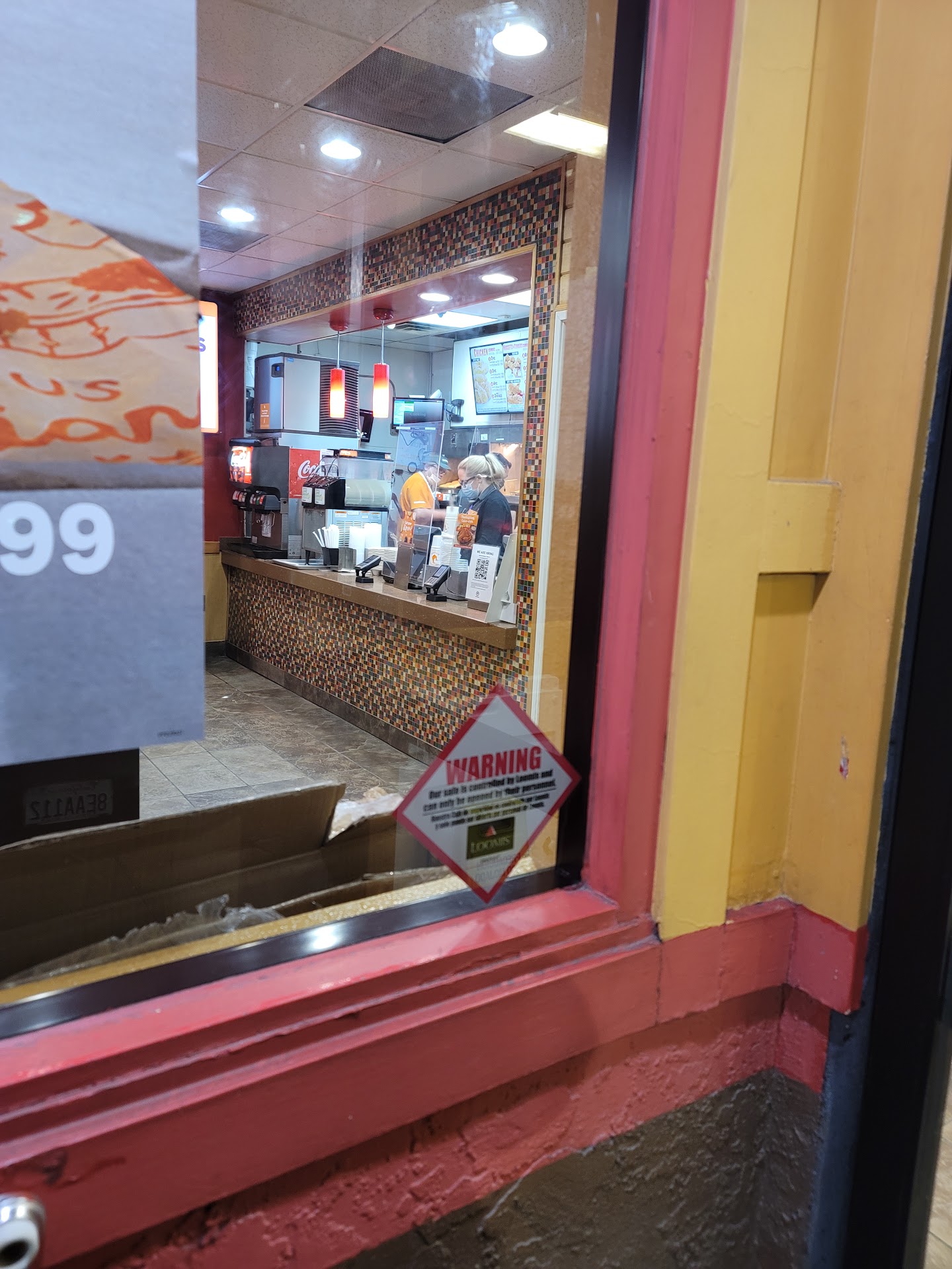 Read moreFood poisoning. Over all pretty disappointing experience. I love popeyes chicken, but i have yet to have a good experience at this location that isnt at least tinged with some level of regret. The bathrooms were locked, and when i asked for entrance i was denied until i got an employee to open one for me while they used the other. The toilet seat was covered in pee. I heard through the wall the employee leave the other restroom without washing their hands after flushing. The three peice tender meal i ordered was only 2 and a half peices. The amount of side order was the smallest ive yet to see. There is no soda water on tap, and the still water had a brown tint to it. Once home, about 2 hours after eating, i got violently sick from both ends, and spent the rest of the night hugging toilets and trashcans. There was a general attitude of "get out" from the staff, which i should have heeded as a warning rather than a paranoia. It must be a hard location to work. I know there is a lot of sketchy people walking on the streets around there, but i dont think they will get my business at this...
