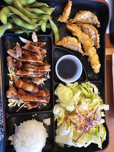 Read moreDecent fast casual Japanese place on Hospitality Lane in SanBernardino. The best thing about this place is the hostess! Super nice and efficient. We had Bento boxes. The presentation was perfect, and so I had high expectations. However the steak teriyaki (at a place named the best teriyaki) was okay grade, but cold. The teriyaki sauce was very thin and super salty, more like soy sauce. The edamame was good but COLD yech. The gyoza was excellent...crispy and flavorful, although deep fried not pan fried. Rice was fine. The salad was mostly white iceberg, and the dressing was medical whip, not the expected tangy Japanese dressing. No miso soup. The shrimp tempura was cooked perfectly, but there was some dirty intestine left in there from poor cleaning...gross!!. The facility smells strongly of pinesol, but otherwise the dining room was nicely decorated and spacious. Plenty of seating. The bathroom was seriously disgusting. Mismatched toilet tank cover, black slime deposits on the lower 4 inches of wall tile, nasty sink and gross pee puddle on the floor. To the owner: you can do better. Cost was $56 for two bento boxes and 1 can of coke and 8 gyoza. Outrageous! This place could easily earn another star or two if some...