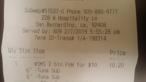 Read moreTerrible experience and apparently they do not even have managers or supervisors there haha what a joke. The customer service is rude and the food is low quality. Had to fight one to get a foot long cookie which they said they were out and I pointed to the sign saying its back! It was burnt. Bread was dry, I asked to melt cheese and toast some meat in the oven and they didn’t. Brown lettuce soggy tomatoes combined with nasty workers, this place obviously is full of high school drop outs who have no idea what they want to do and are miserable. If there is a manager, you need to reevaluate the work force! I already filed a complaint...